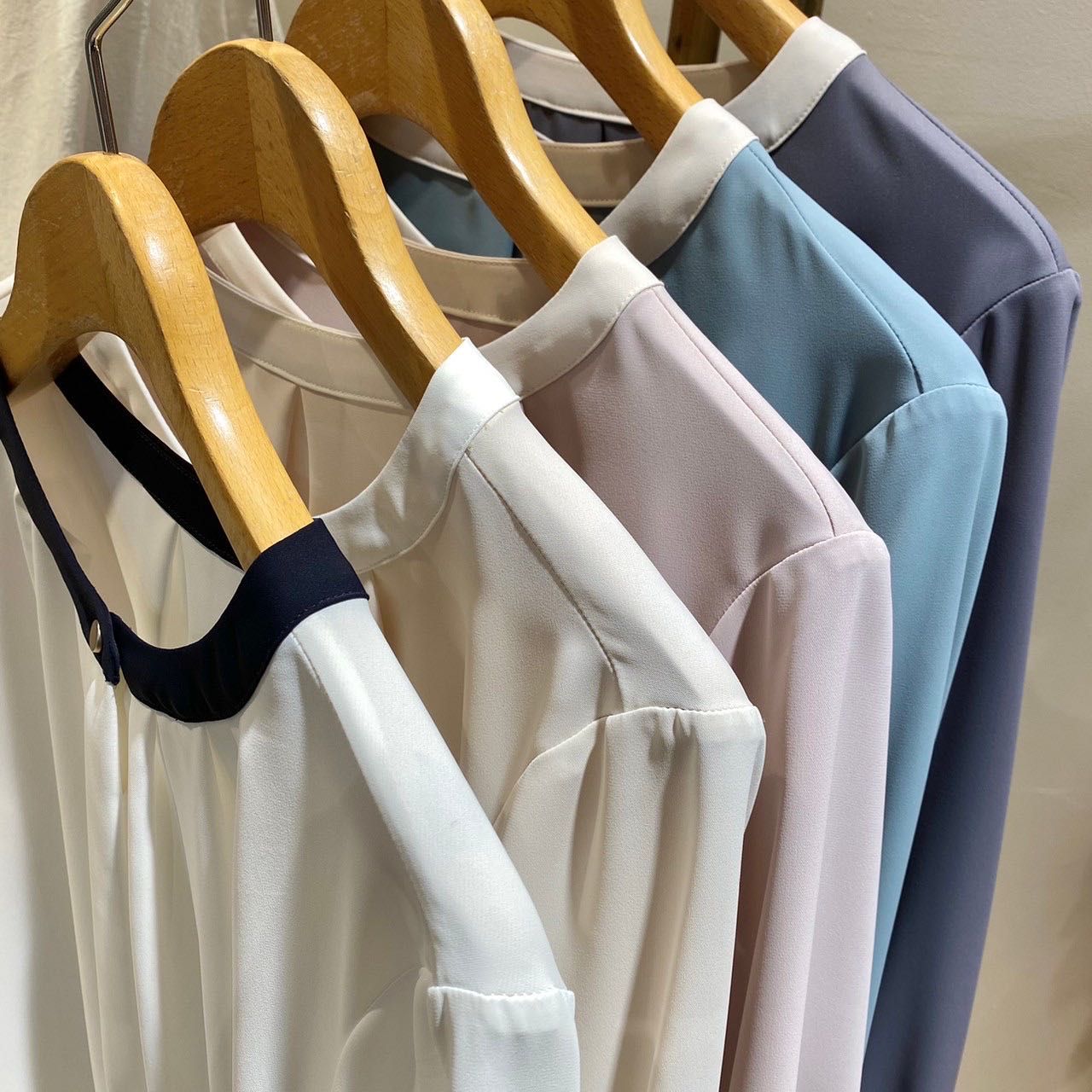 ブラウスは去年も大人気の形がパールから金ボタンになってより綺麗めになって登場です♡