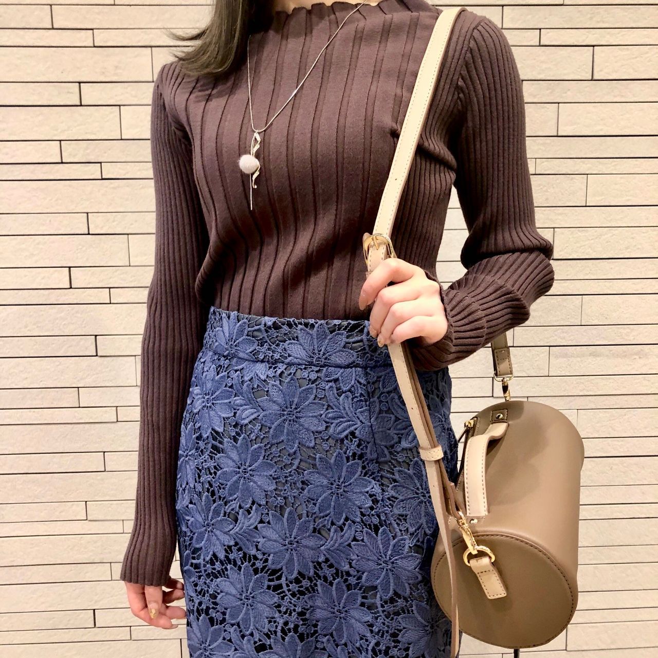 発色のきれいなブルーには白の合わせもきれいですが、ビターブラウンやチャコールグレーなどの濃い色を合わせてもおしゃれ☆