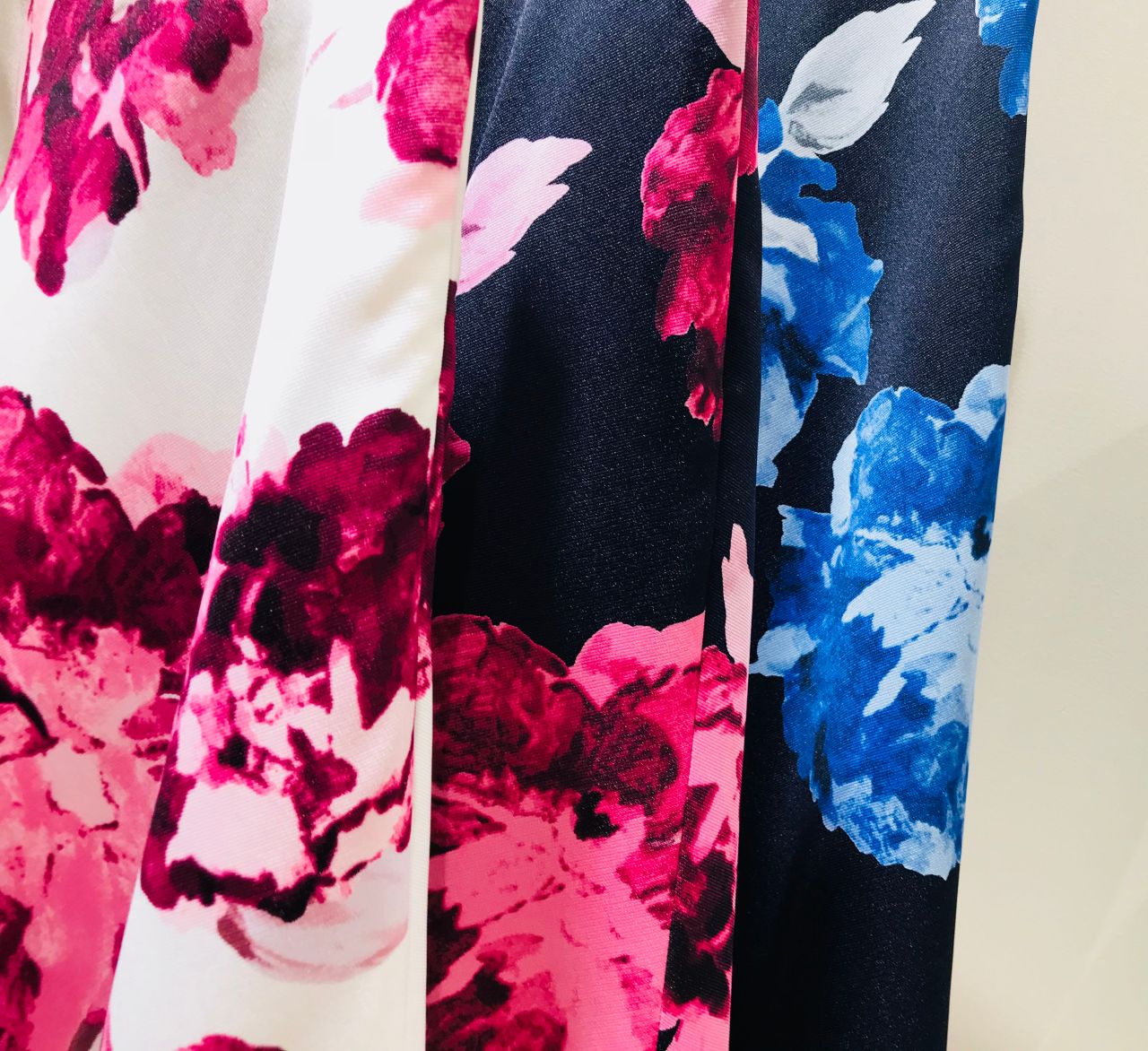 春カラーで今年らしい大柄の花のフレアスカートをご紹介します!!