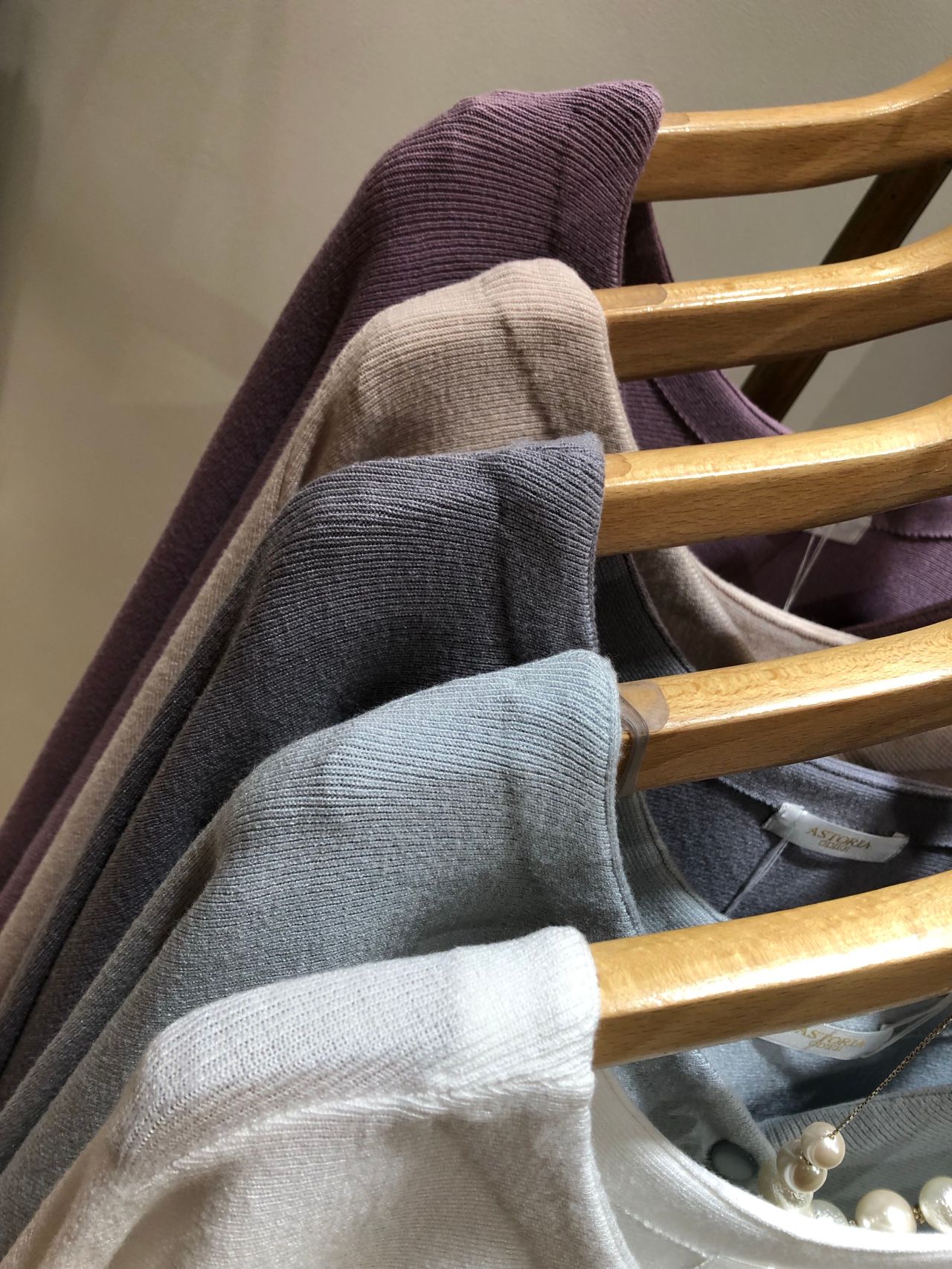 ニットはカーディガンとしても着られる2wayとなっていて、着回し力も高いです☆