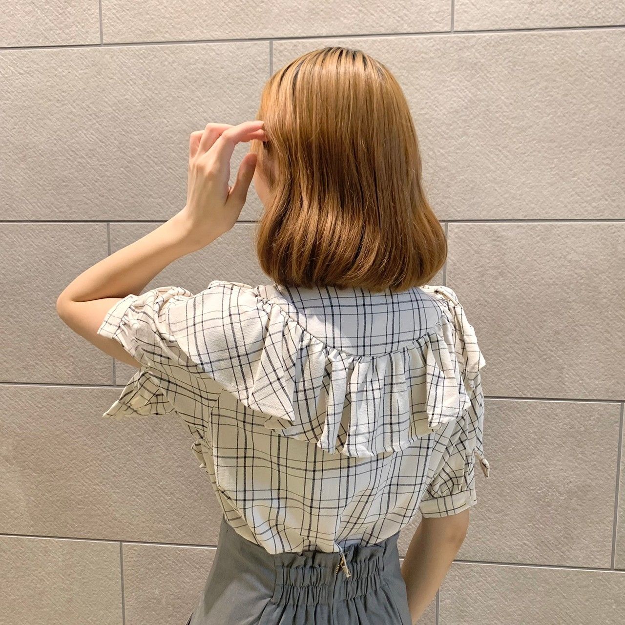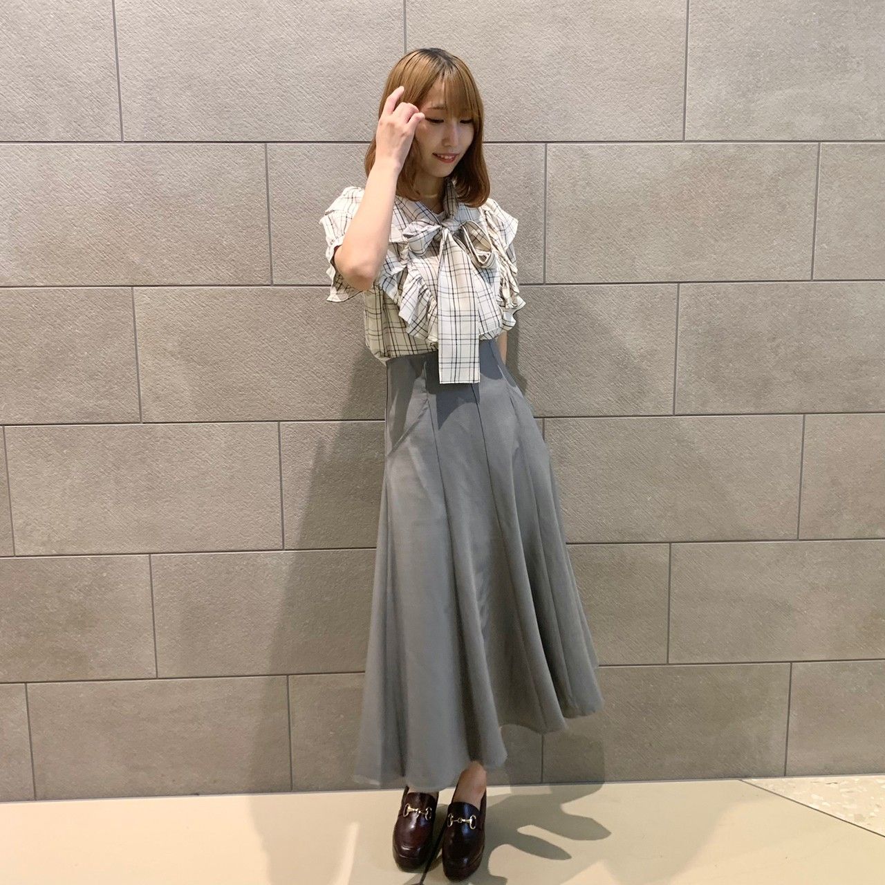 大きなフリルとリボンでボリュームたっぷりのブラウスになっている為マーメイドシルエットのようなラインが程よく出るスカートと相性抜群です!