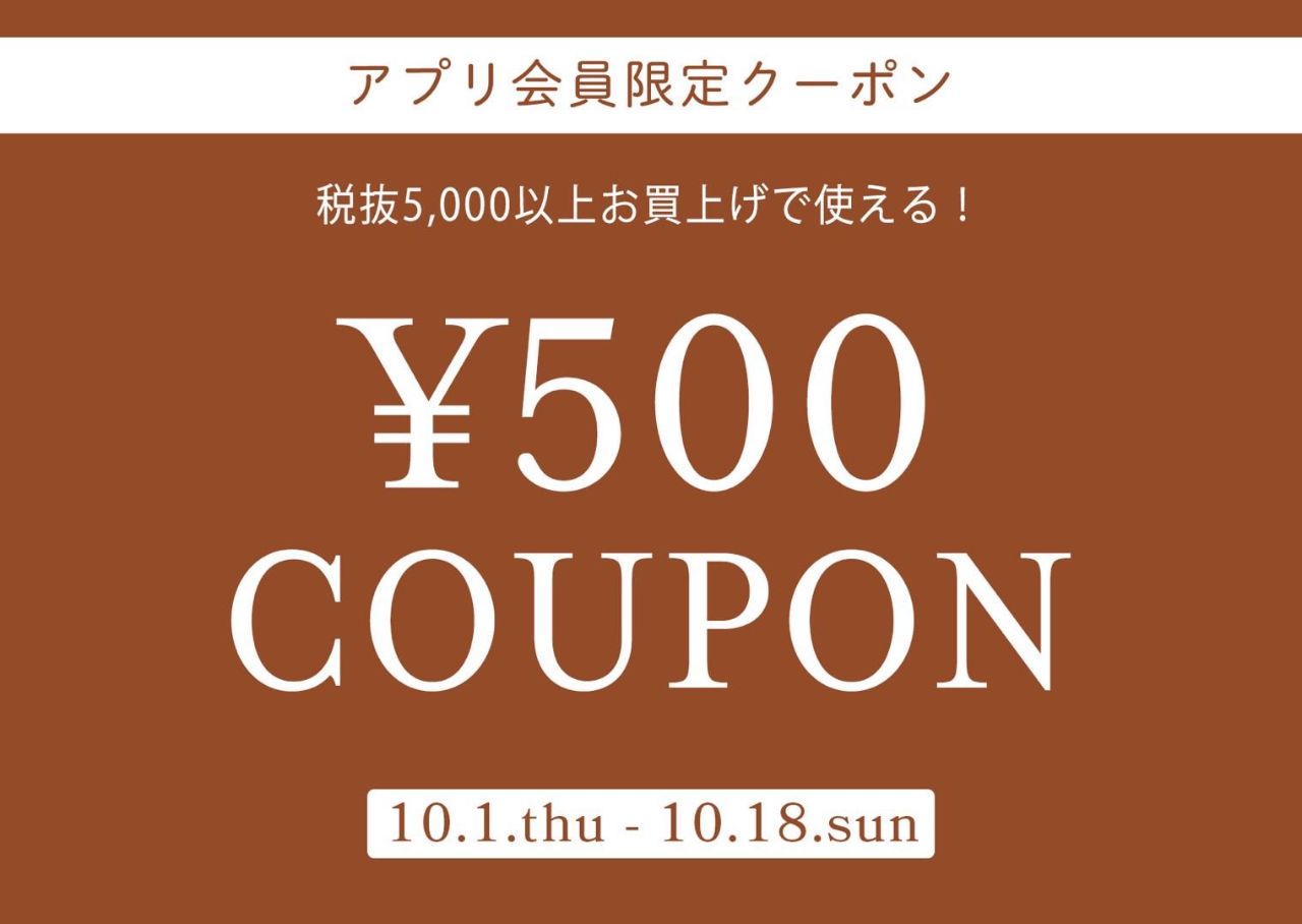 本日から¥5000(税抜)以上お買い上げでアプリダウンロードして下さっているお客様限定で¥500offキャンペーンが始まりました!