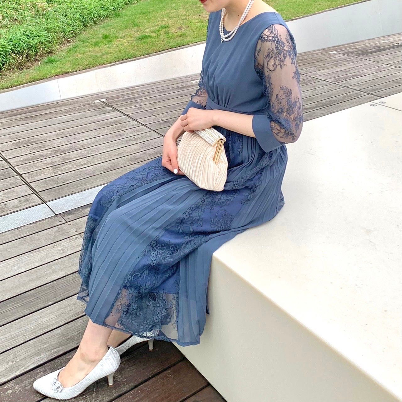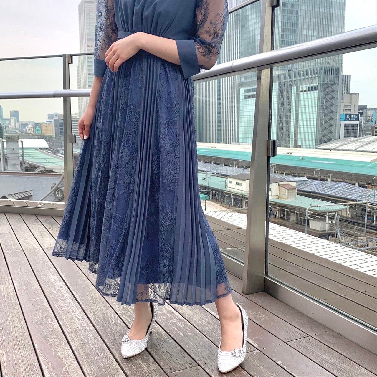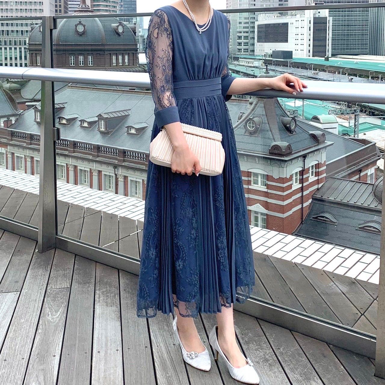 レースとプリーツの切り替えが上品♡結婚式やパーティにオススメのフォーマルドレス♡東京駅八重洲店