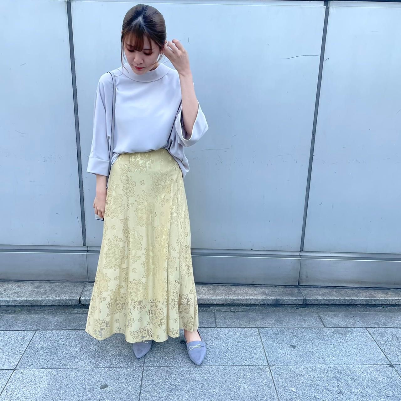 今年らしいロングスカートとも相性いいですし