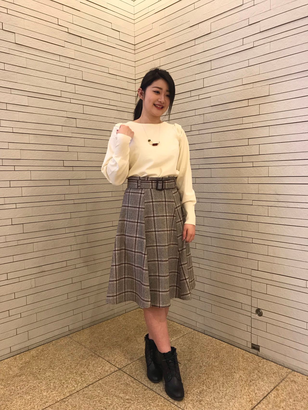 膝丈のスカートと合わせて少し大人っぽいコーデです!