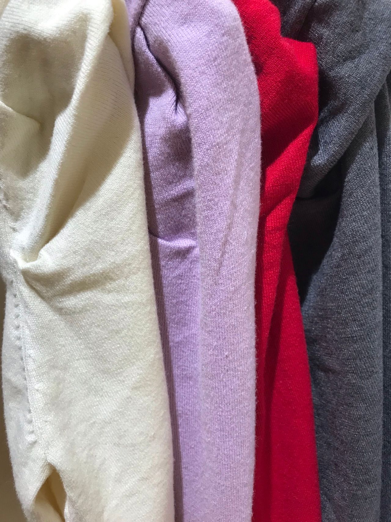 シンプルなデザインなので無地や柄物でも合わせられるので、使い回しできます!