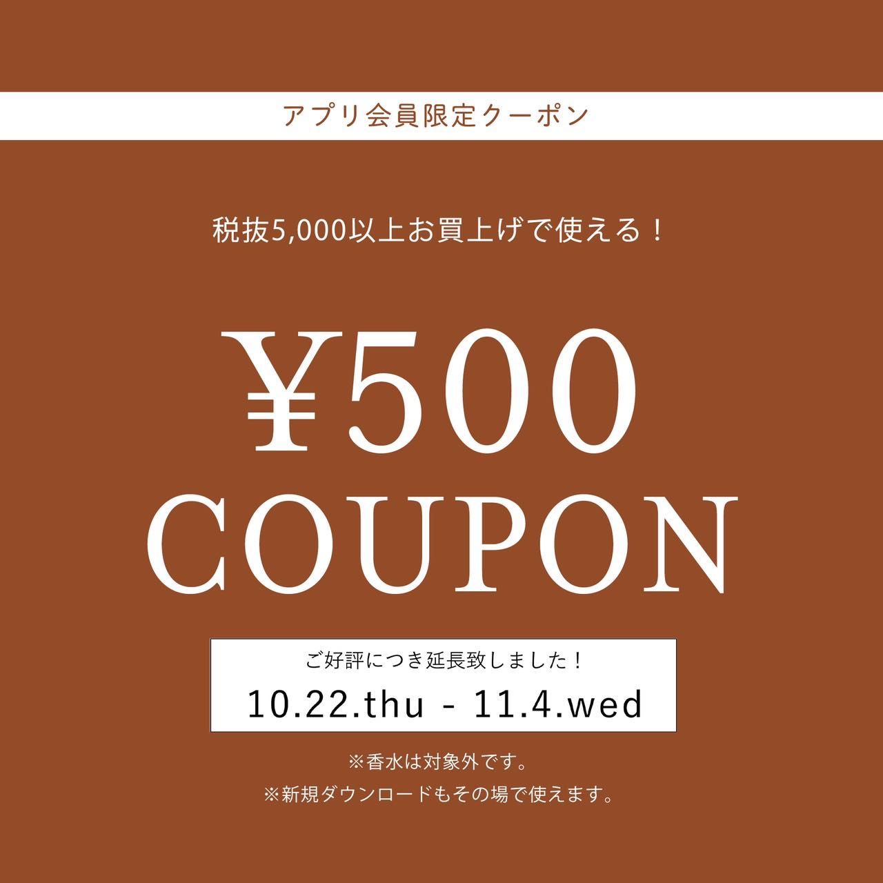 ご好評につきアプリキャンペーンを期間延長して実施中です!税抜5000円以上お買い上げで500円クーポンをご利用頂けます☺︎
