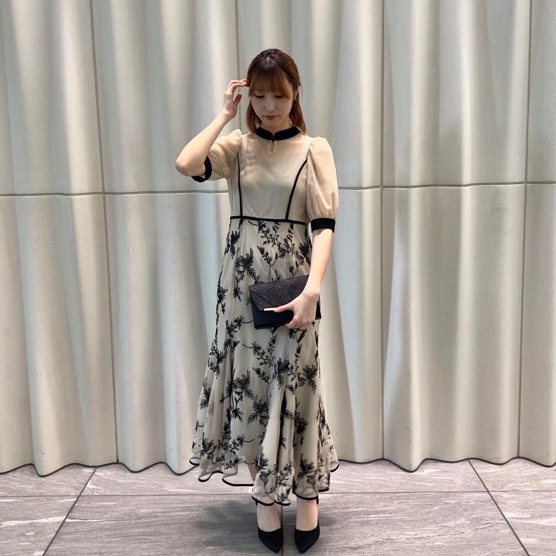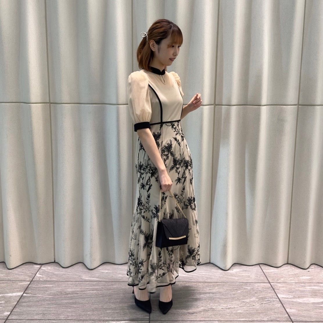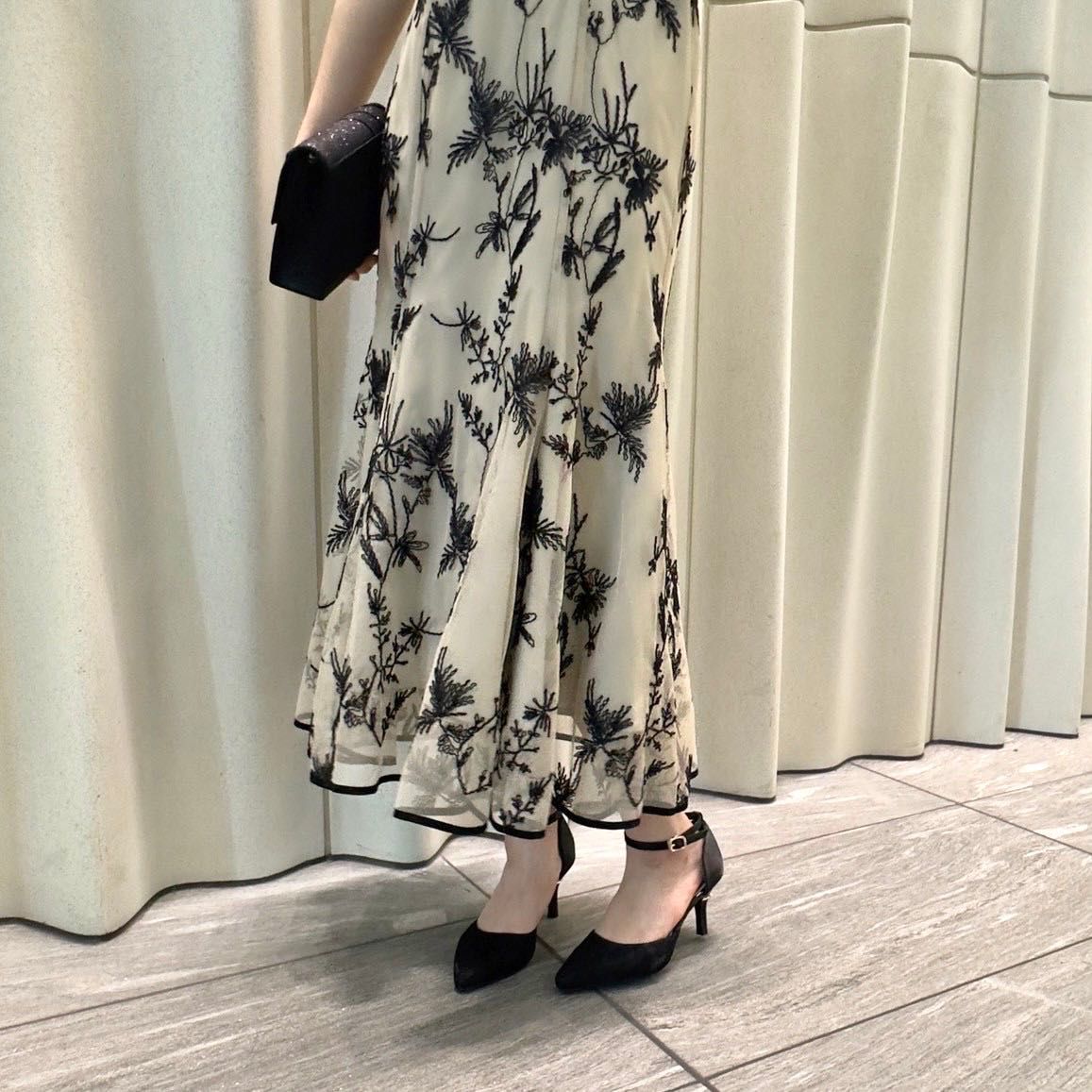 マーメイドシルエットのしなやかな揺れ感と、甘すぎない刺繍レースでエレガントな雰囲気に♩
