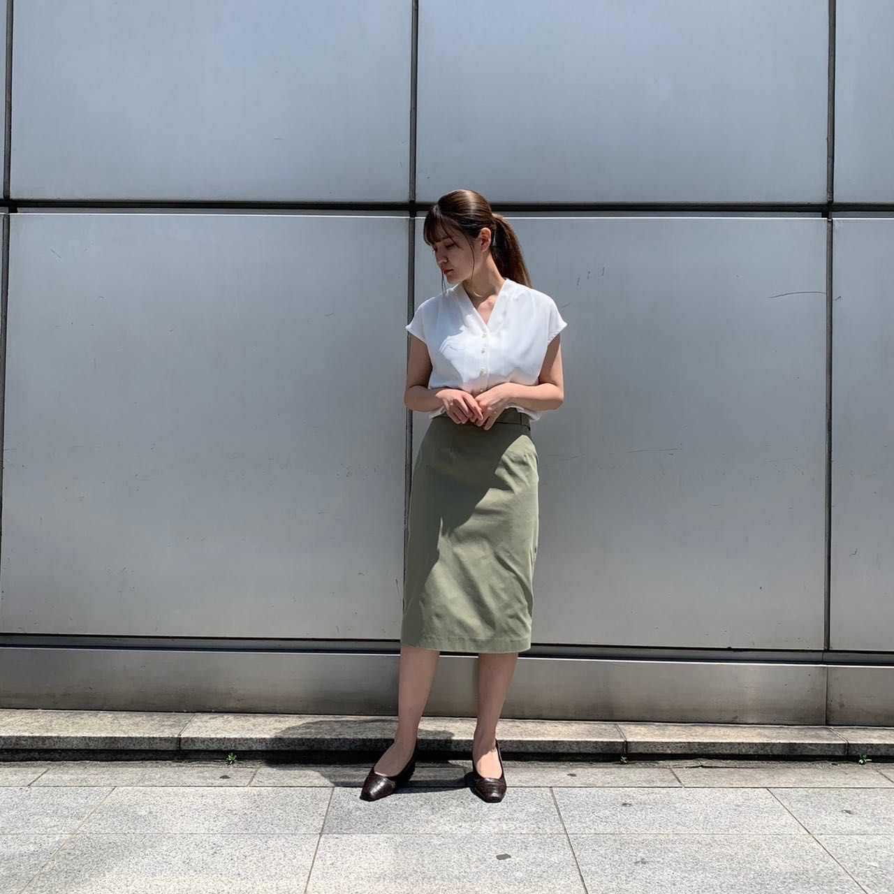 今回はブラウスと合わせてみましたが