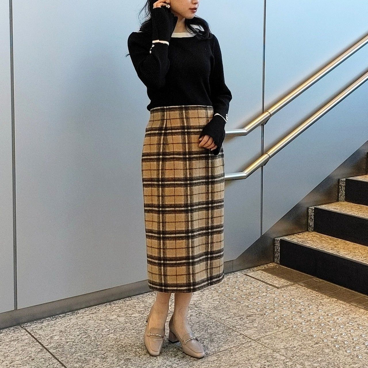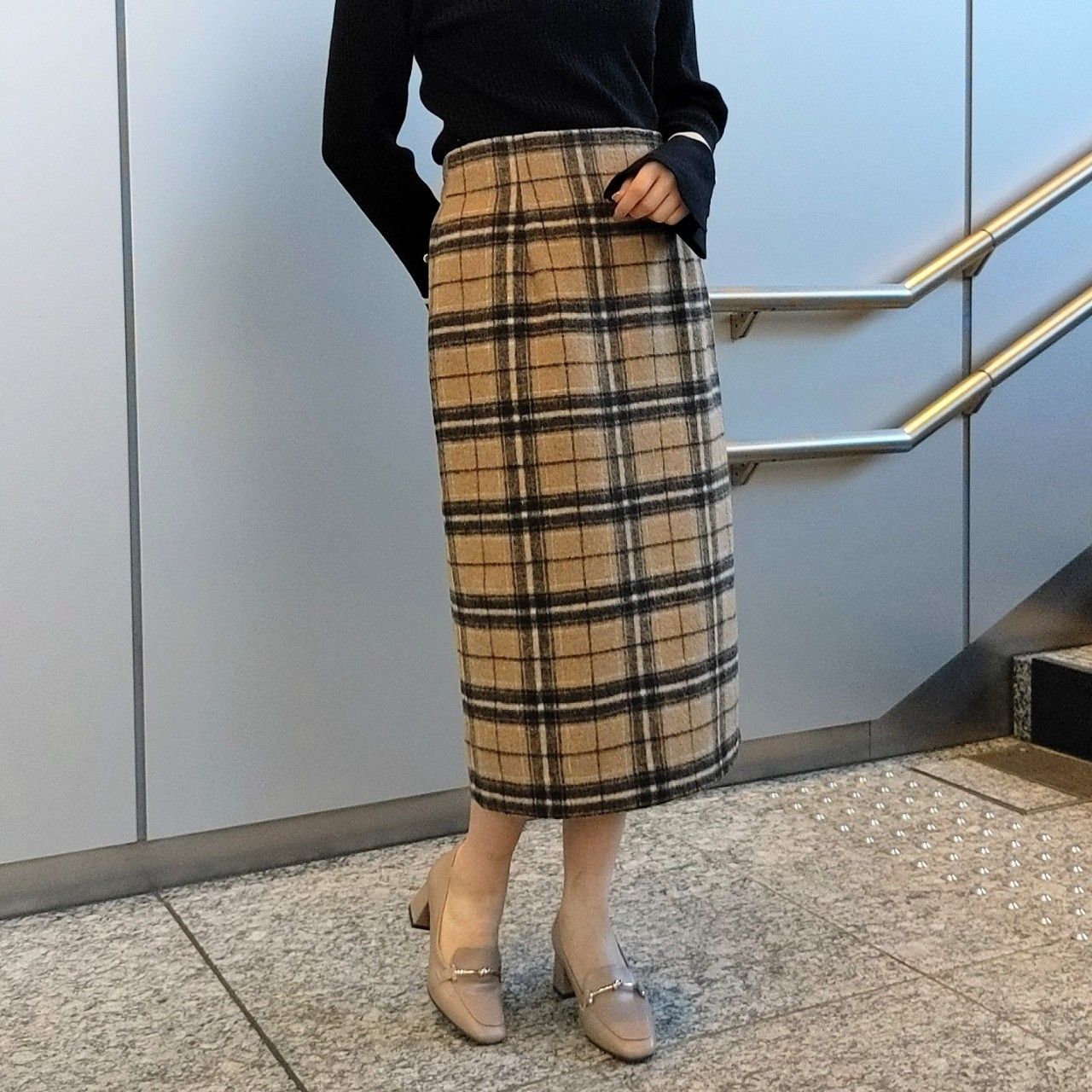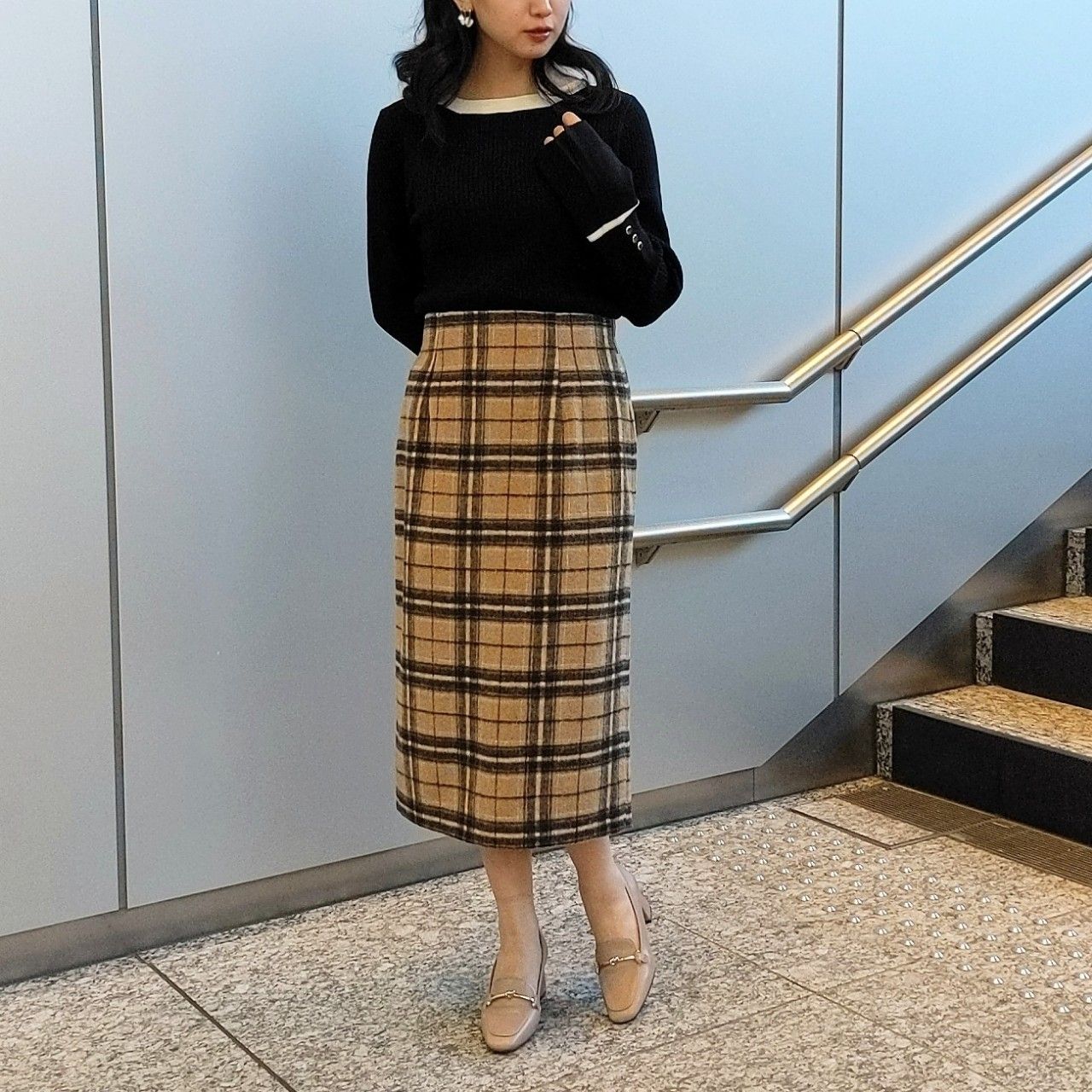 オフィススタイルにも使いやすい上品なチェック柄がマンネリしがちな冬のスカートスタイルに彩りを与えてくれますよ♡