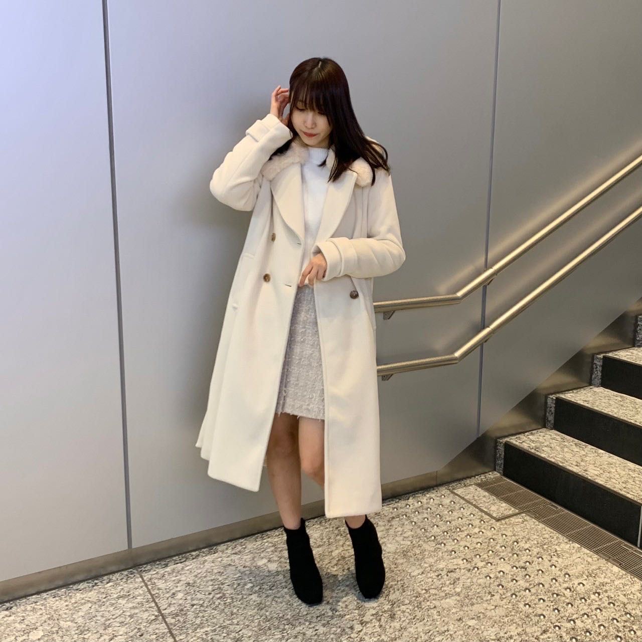 首元のファーがポイントの女性らしいデザインのロングコートです♡