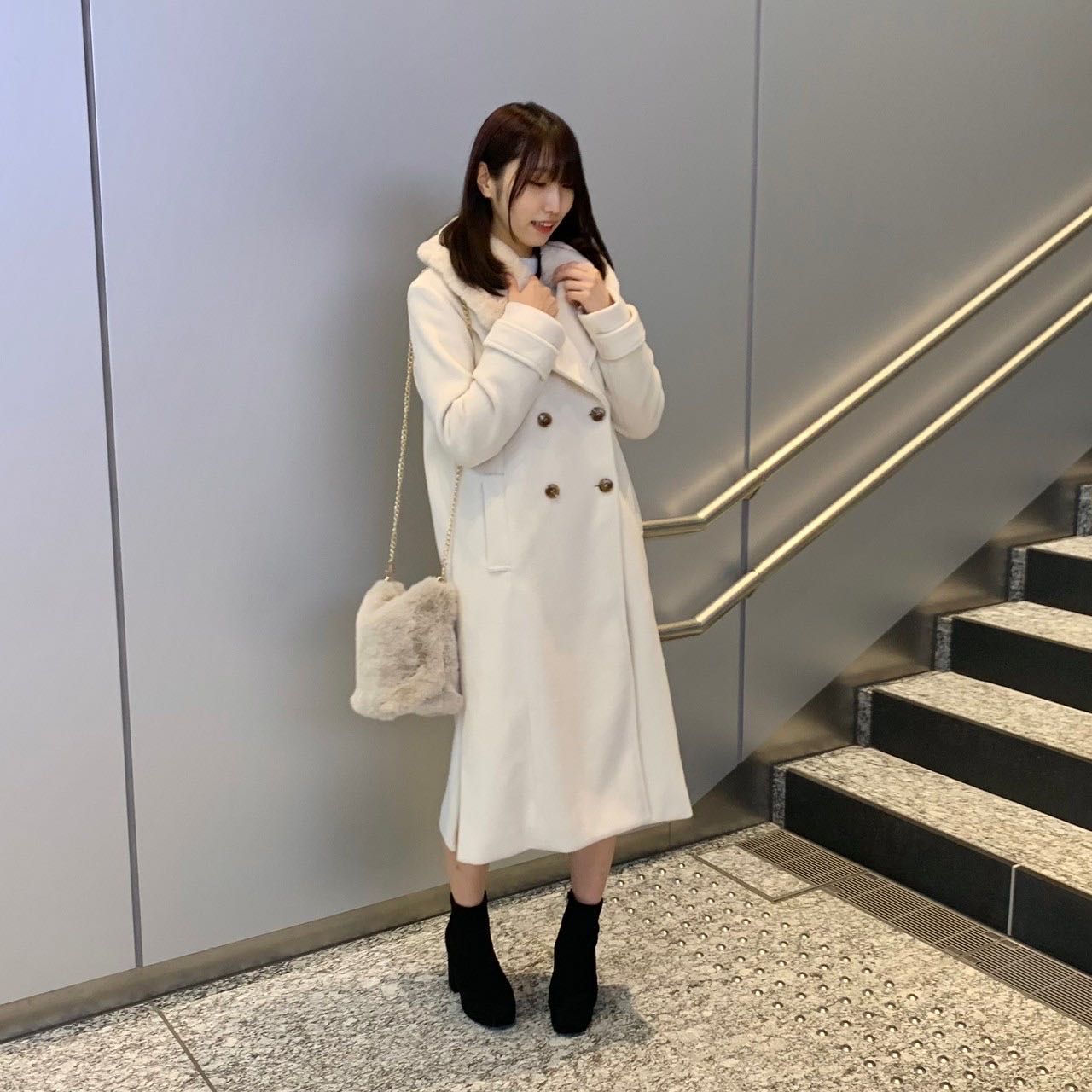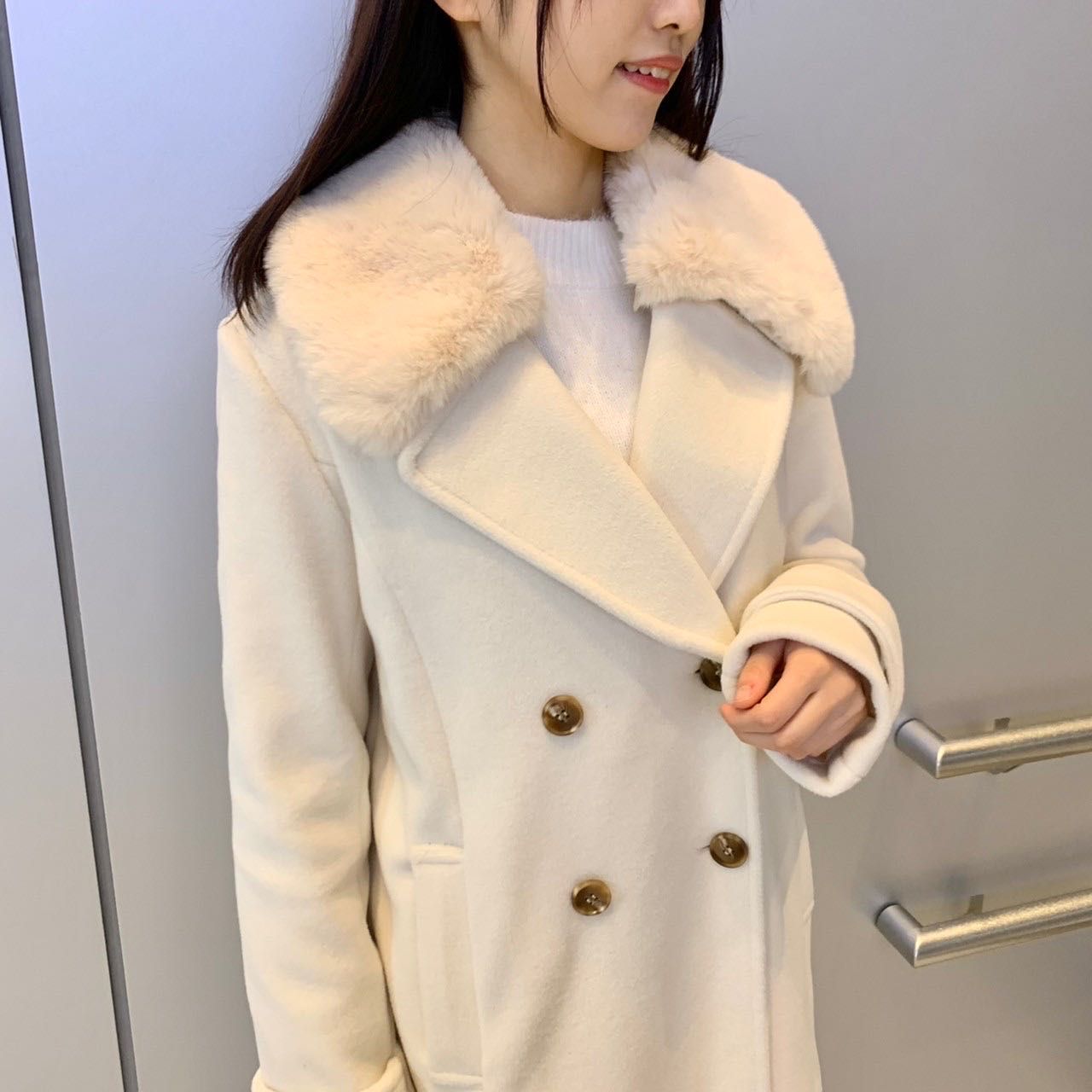 首元のファーは、ボタンで付いているので、外していただくとお仕事用にもお使いいただけます◎