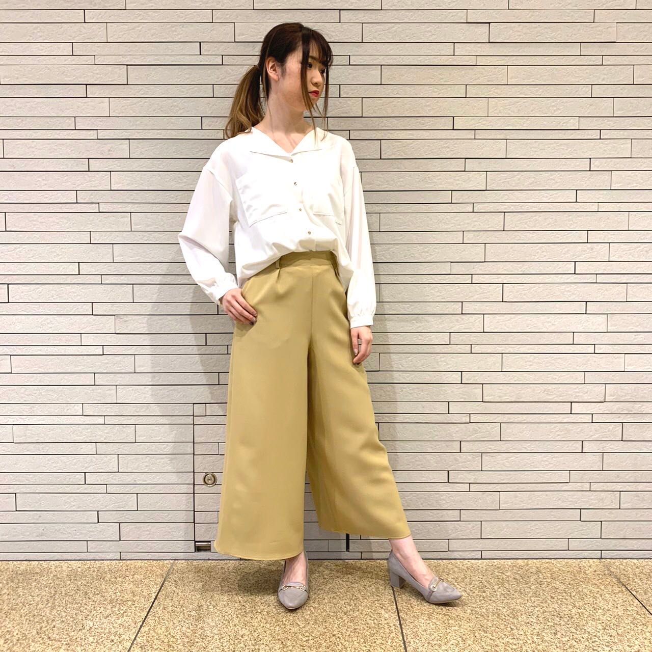 パンツは長すぎない丈なので、ぺたんこの靴でもOK!センタープレスが入っていないので、キレイなワイドシルエットが出て、たっぷりめなトップスと合わせてカジュアルにまとめてみてもいいですよ☆