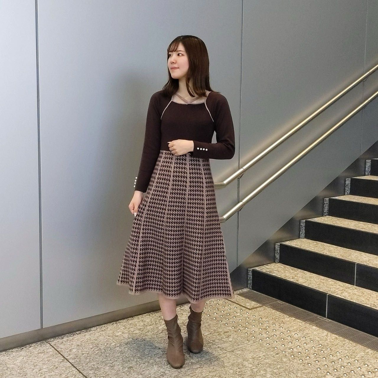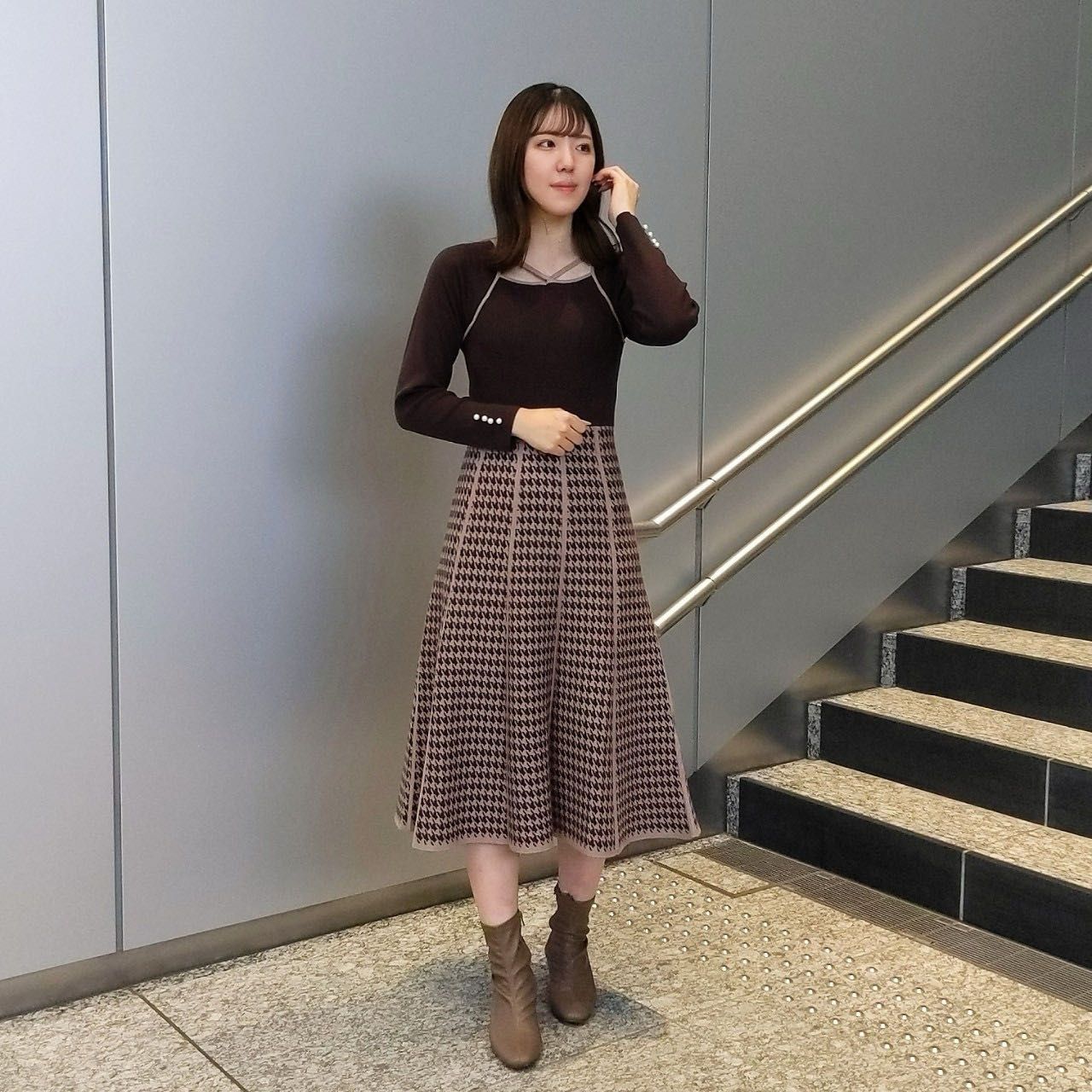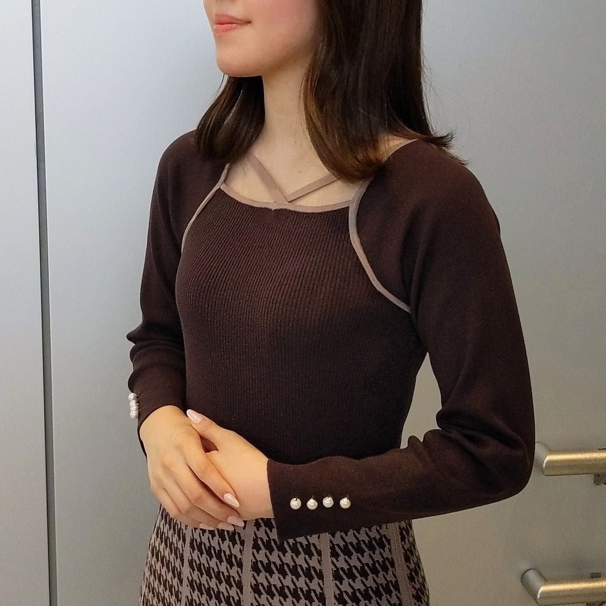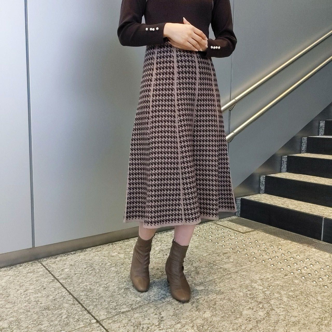 秋冬を匂わせるクラシカルでシックな千鳥柄は新鮮さもありつつ、一気にレディムード漂う一枚です!