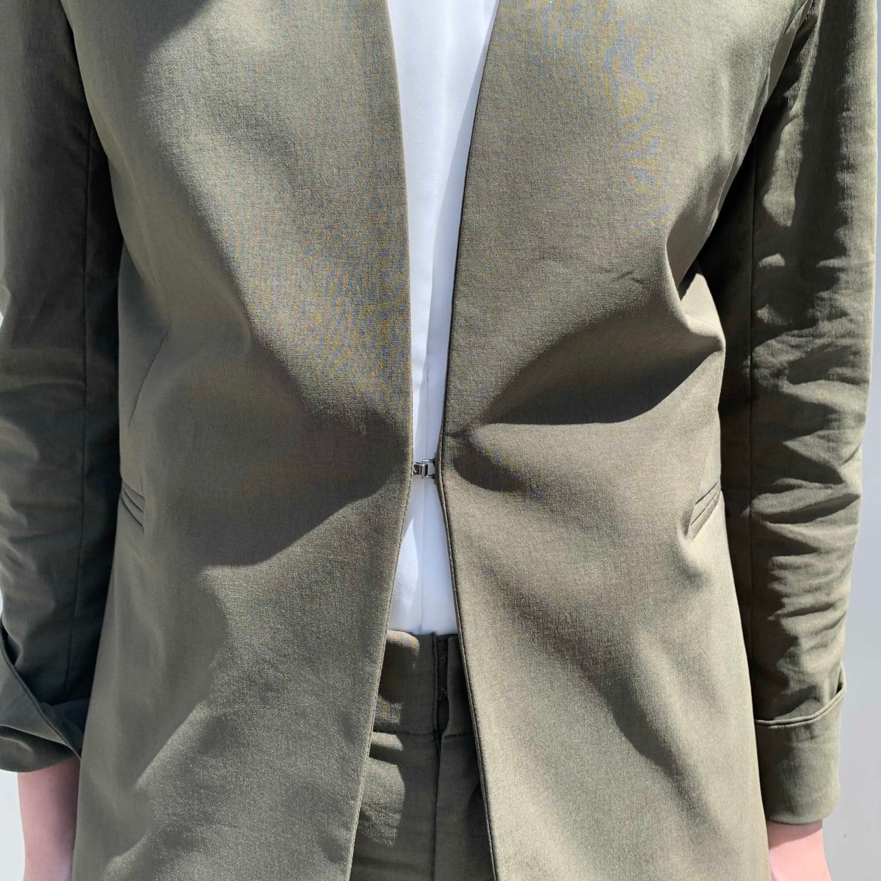 ◎ リネン混カラーレスジャケット