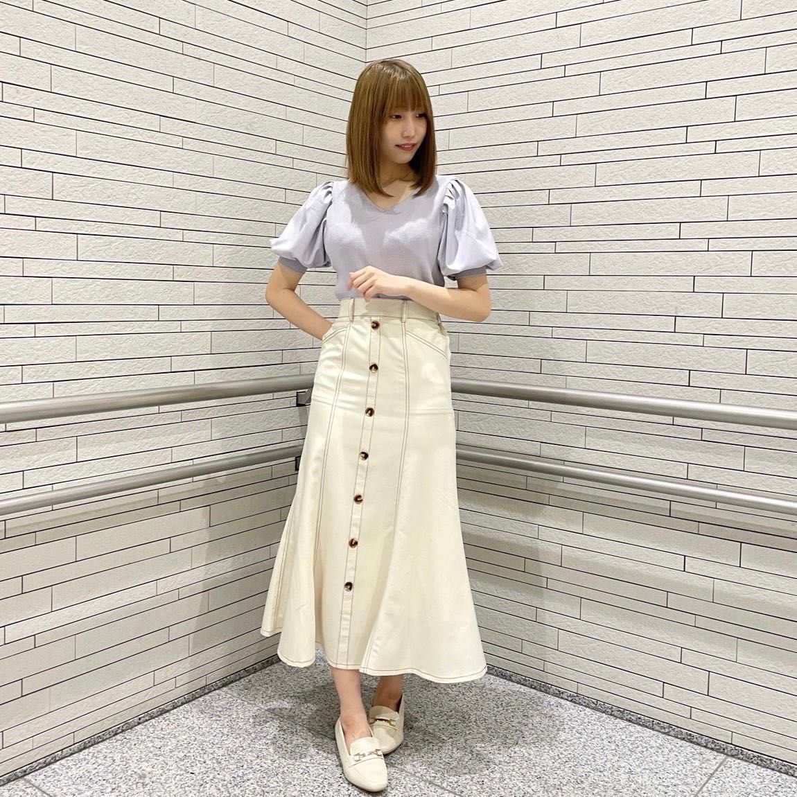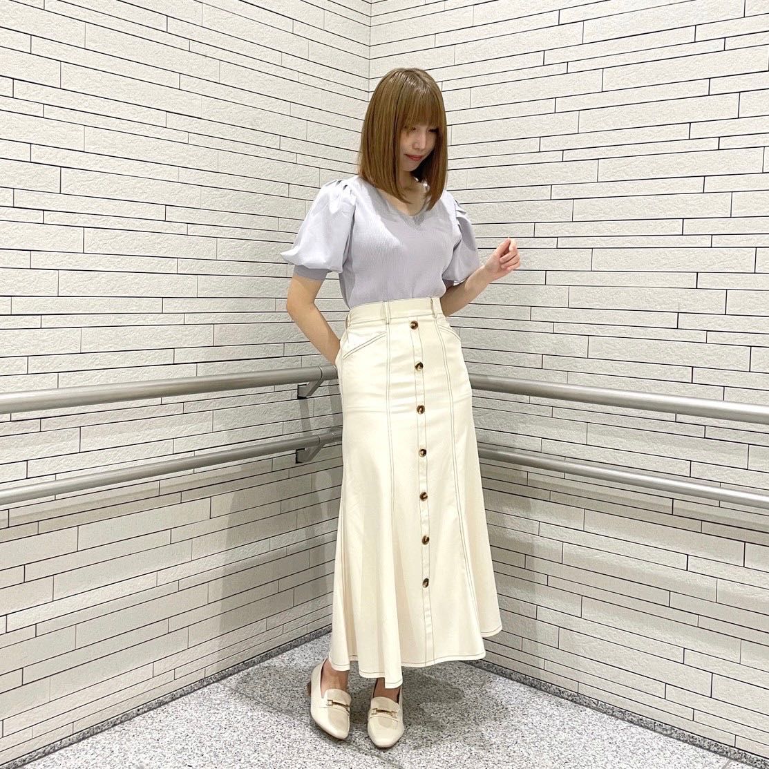 マーメイドシルエットでカジュアルになりすぎないので、ブラウスなどと合わせたキレイめなコーデもおすすめです♪