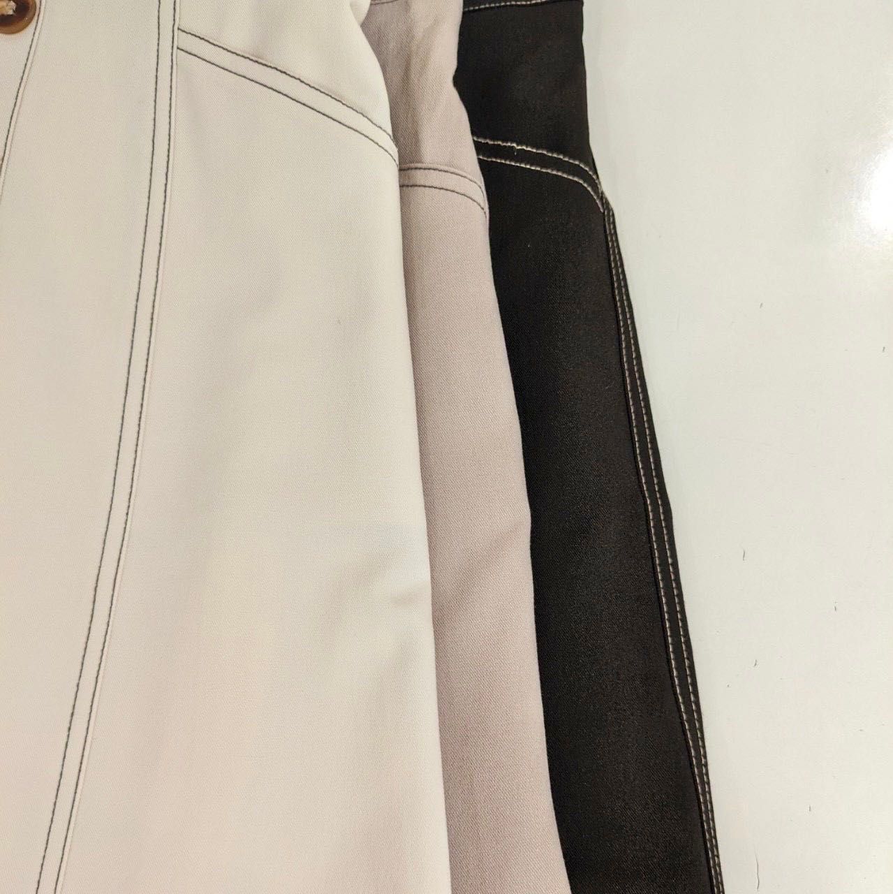ボタンと配色になっているステッチで、縦のラインが強調され、スッキリとお召しいただけます◎