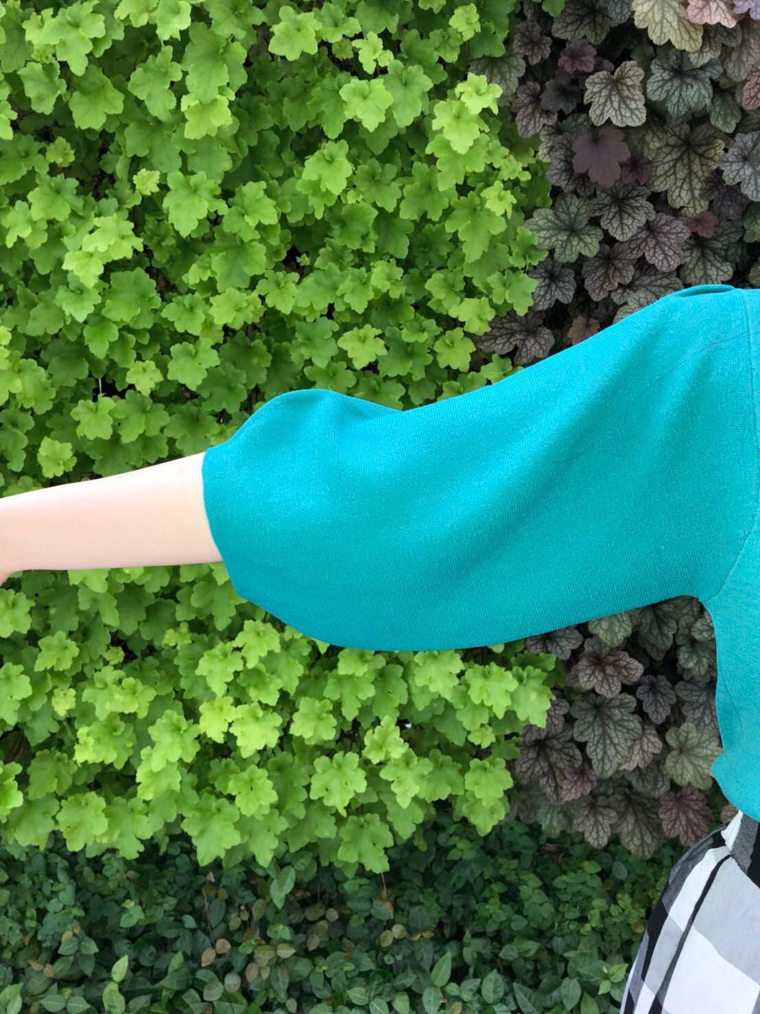 襟元がハートネックになっていて袖の部分はゆったりめなので、腕など気にせずに着ていただけます!