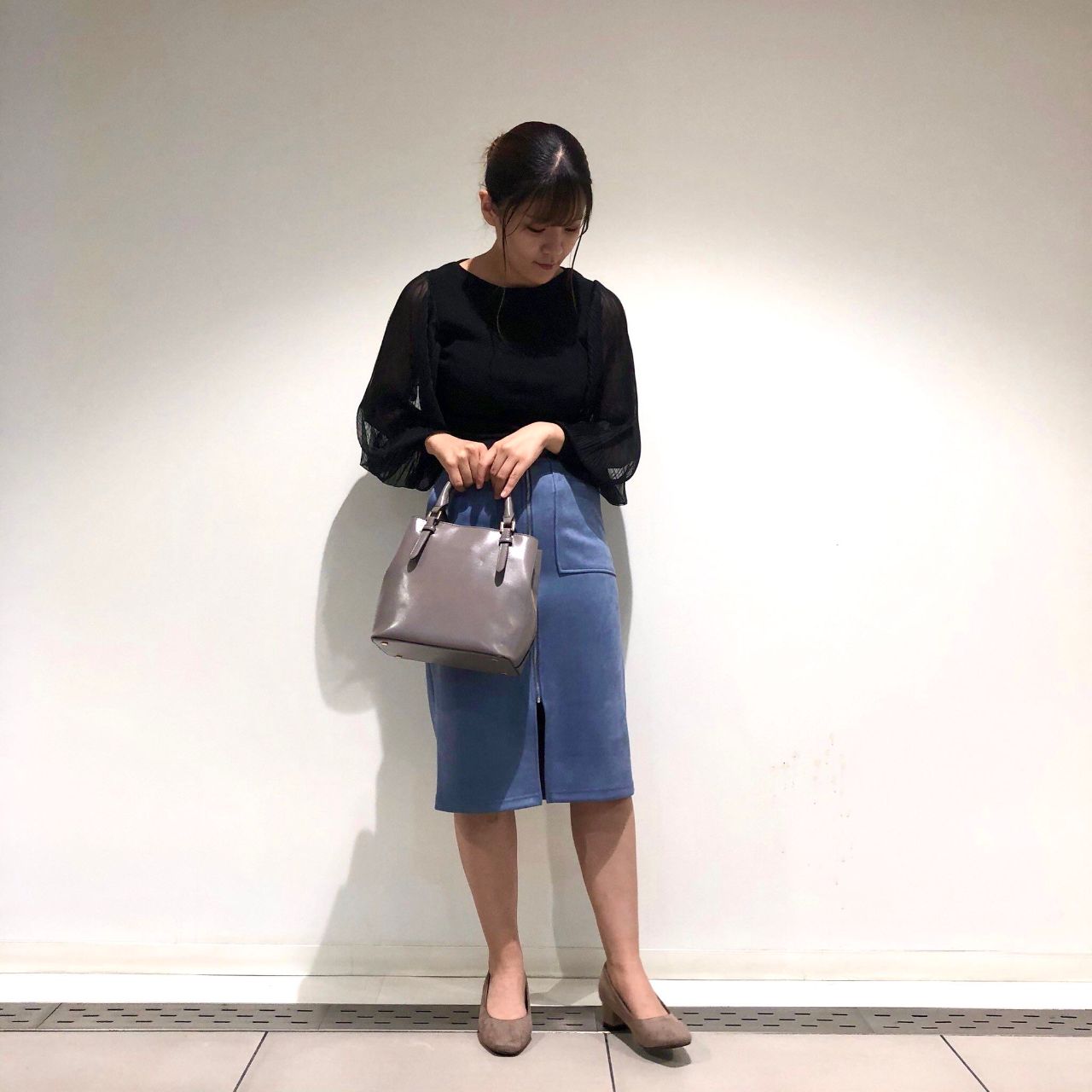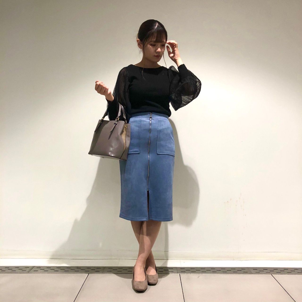 トップスにアクセントが出るので、ボトムはタイトラインのものがバランスよくまとまるので、おすすめです☆