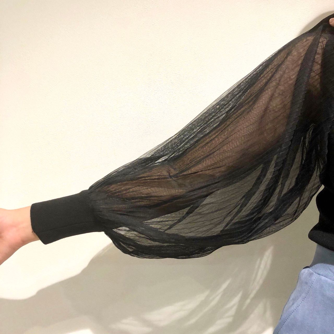 袖のシアー感とボリュームがポイントのニットです!