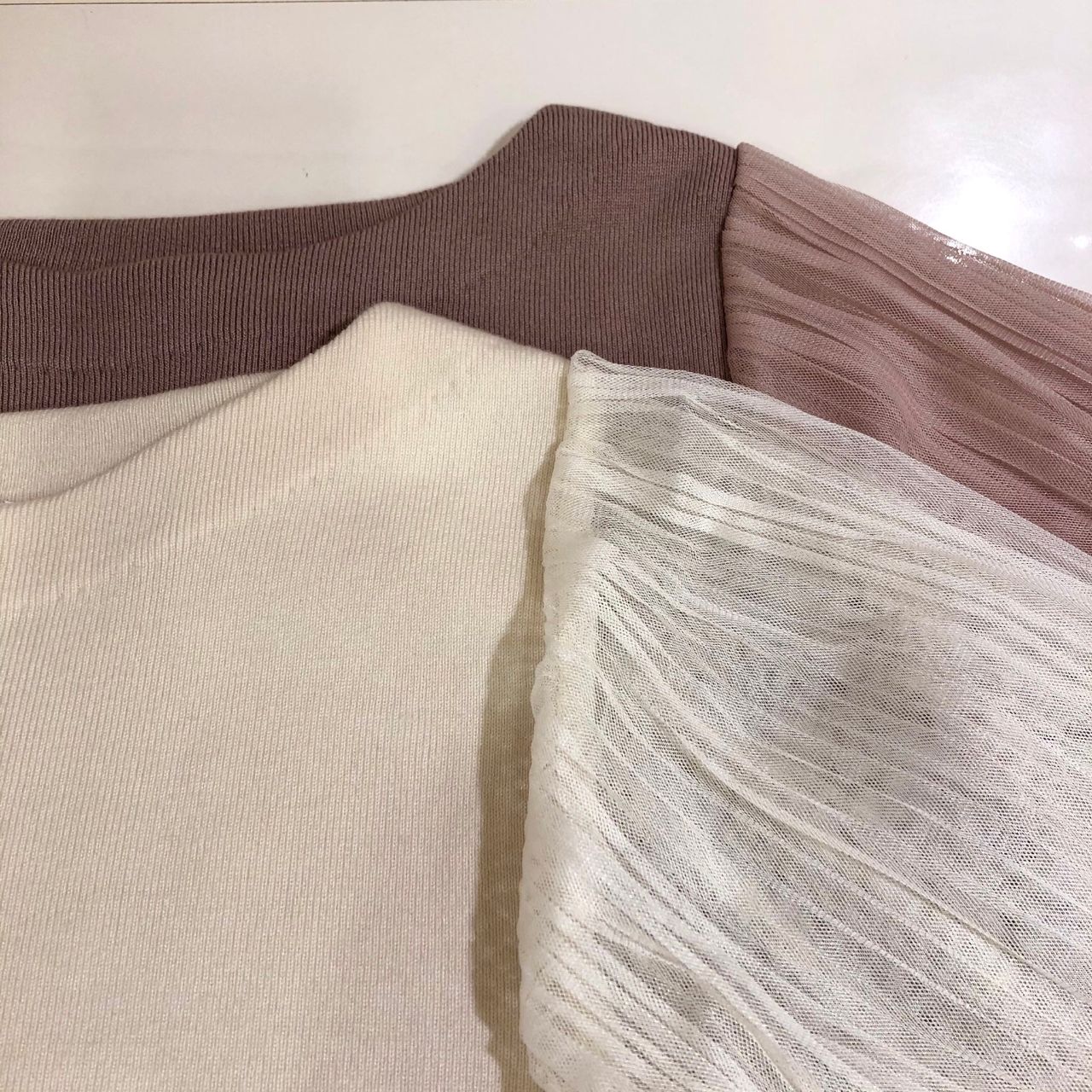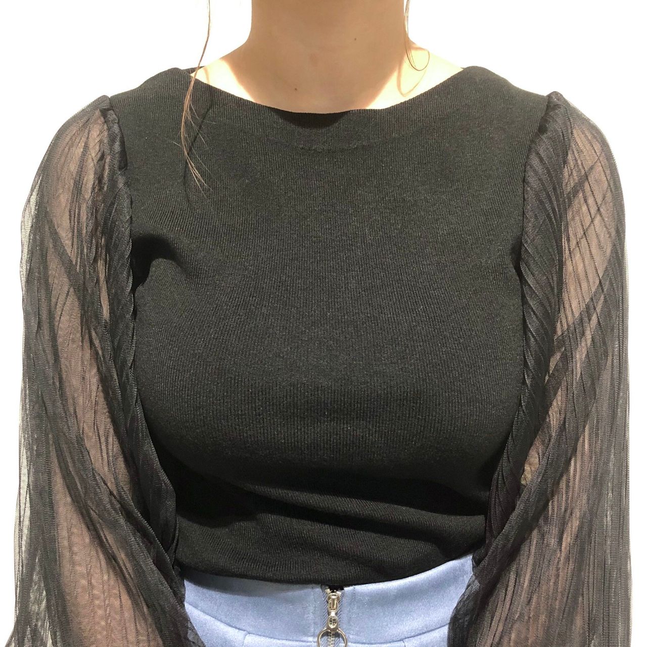 チュールプリーツスリーブニットプルオーバー