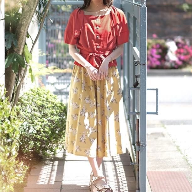 柄のスカートと合わせれば一気に華やかさ倍増☺︎