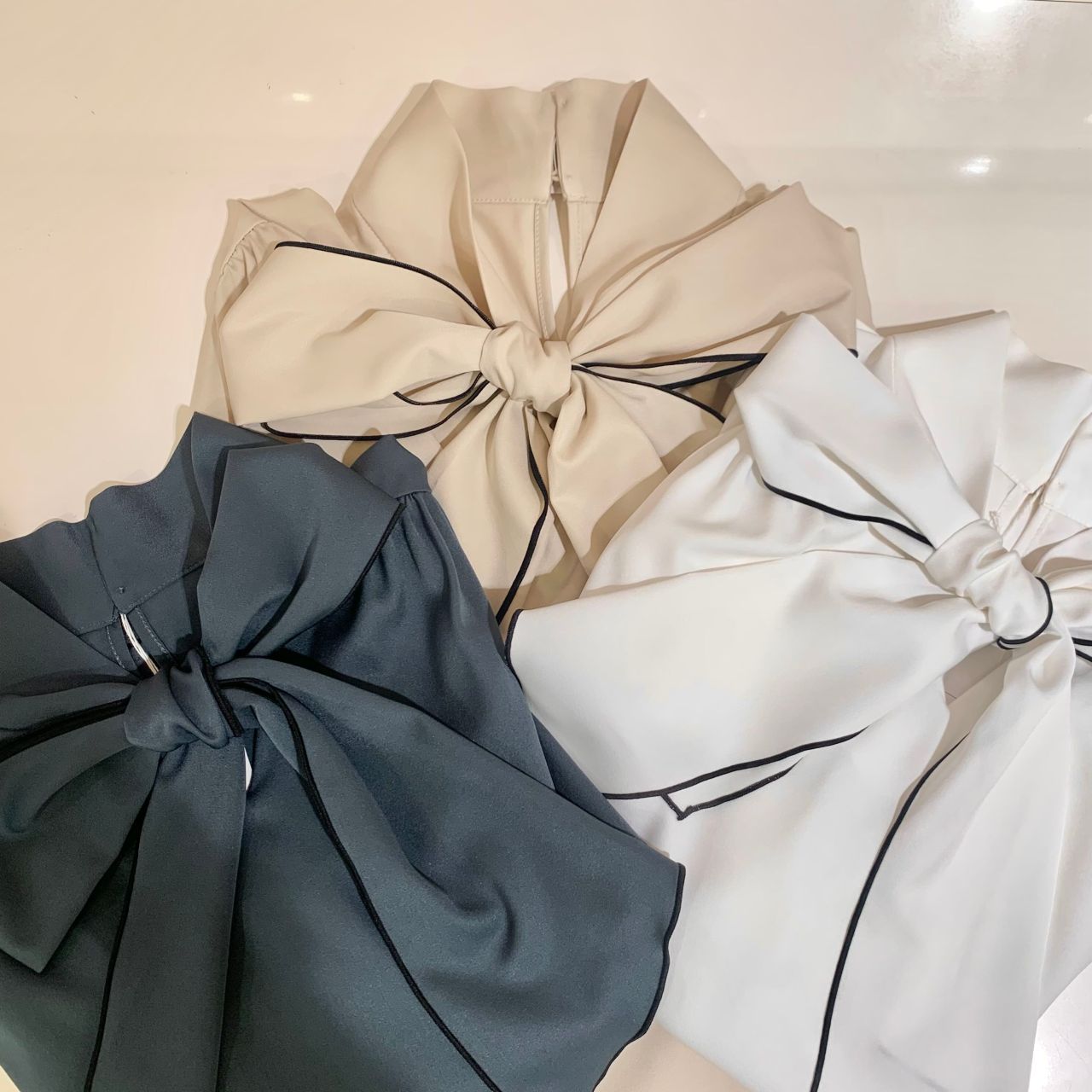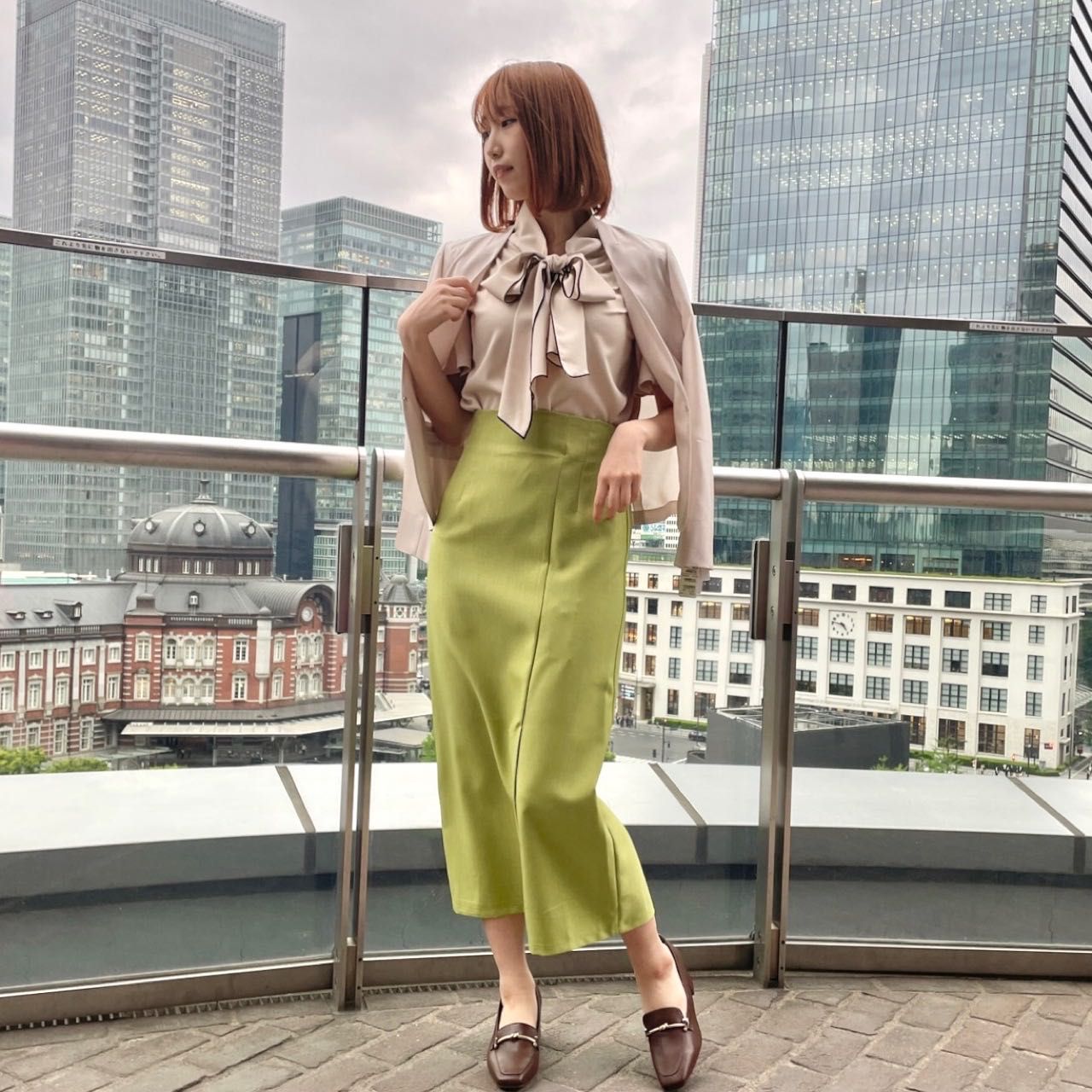 大きめのリボンタイなので着るだけで顔周りが華やかな印象に♡ワンランク上のオフィススタイルになりますよ~!