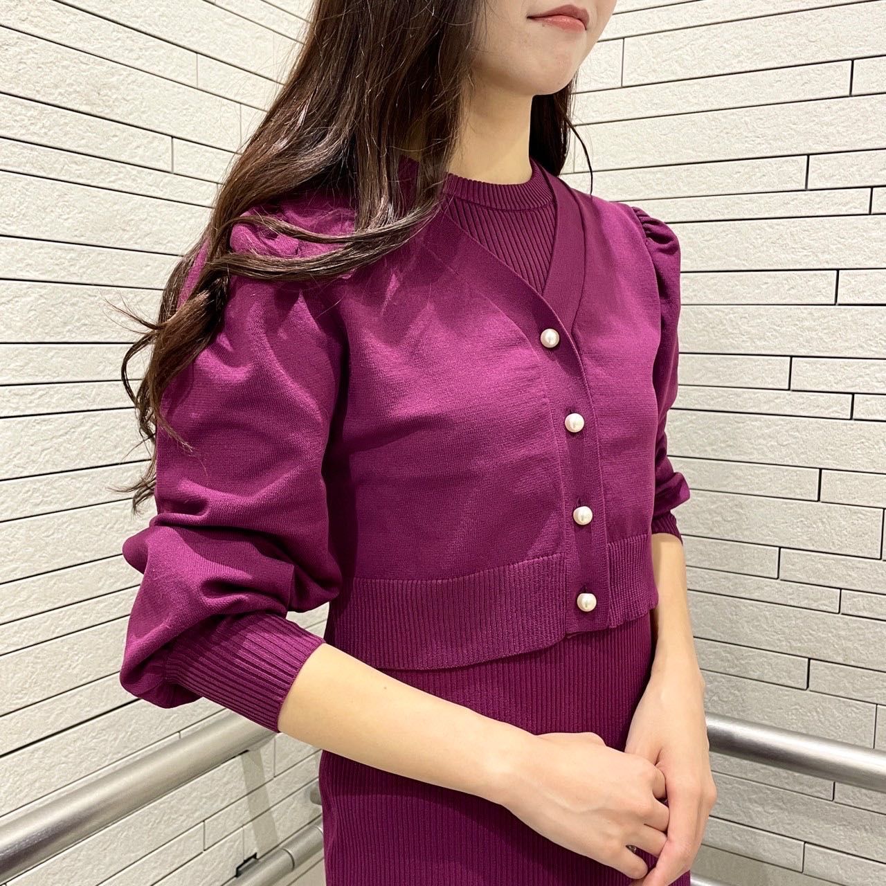 落ち着いたお色のカーディガンにパールのボタンがアクセントを加えてくれます♡