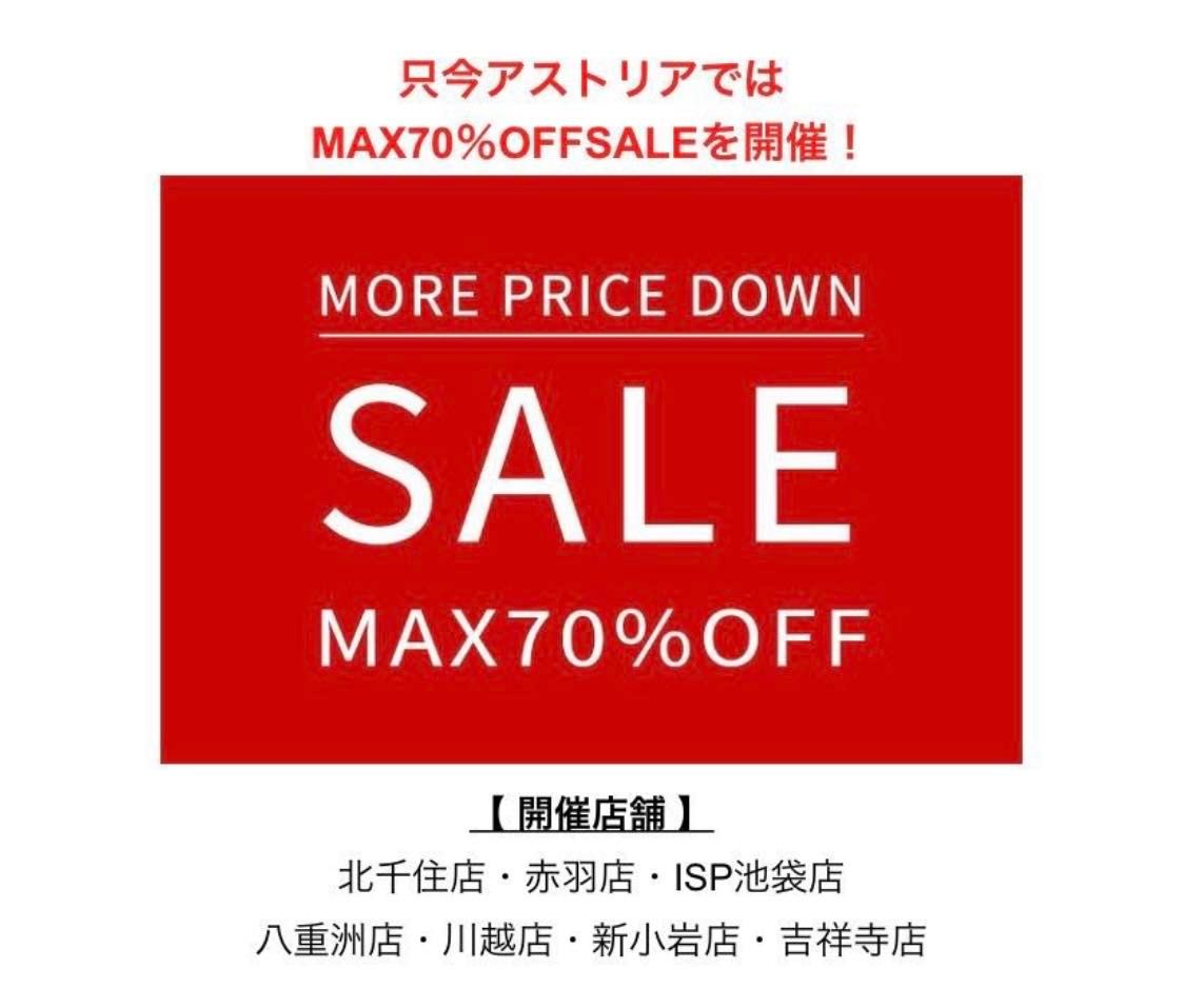 ただ今アストリアではセール絶賛開催中です!年明けのお値段よりさらにお値下げでかなりお買い得になっています!サイズ、カラーがあるうちにぜひ、お立ち寄り下さい!