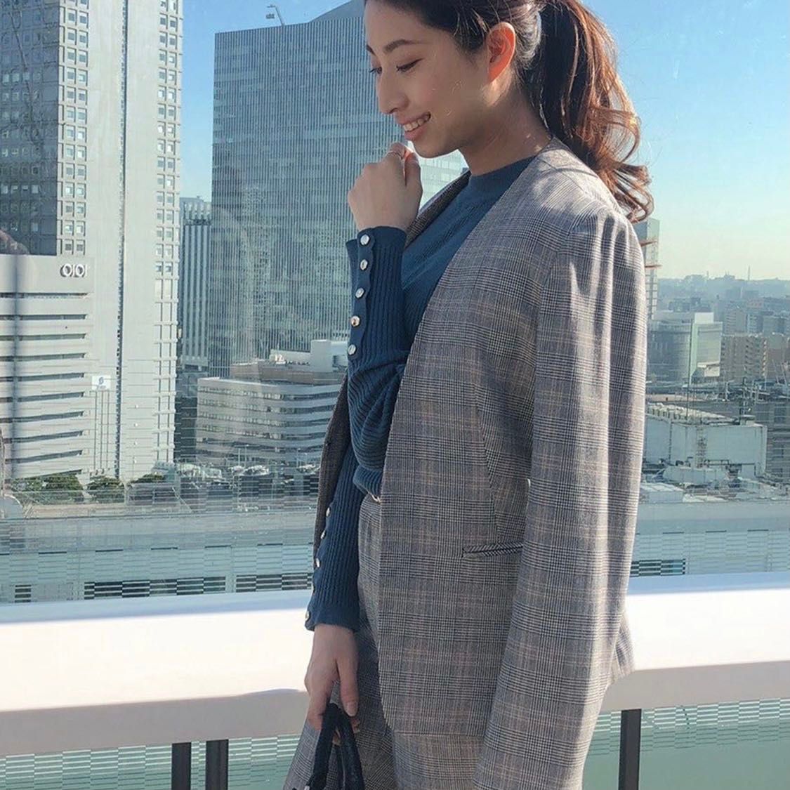 ジャケットは長くも短くもない通常の丈感になっているのでスカート、パンツどちらとも合わせやすいです!ウエストもシャープされているのでスッキリ着ていただけます。