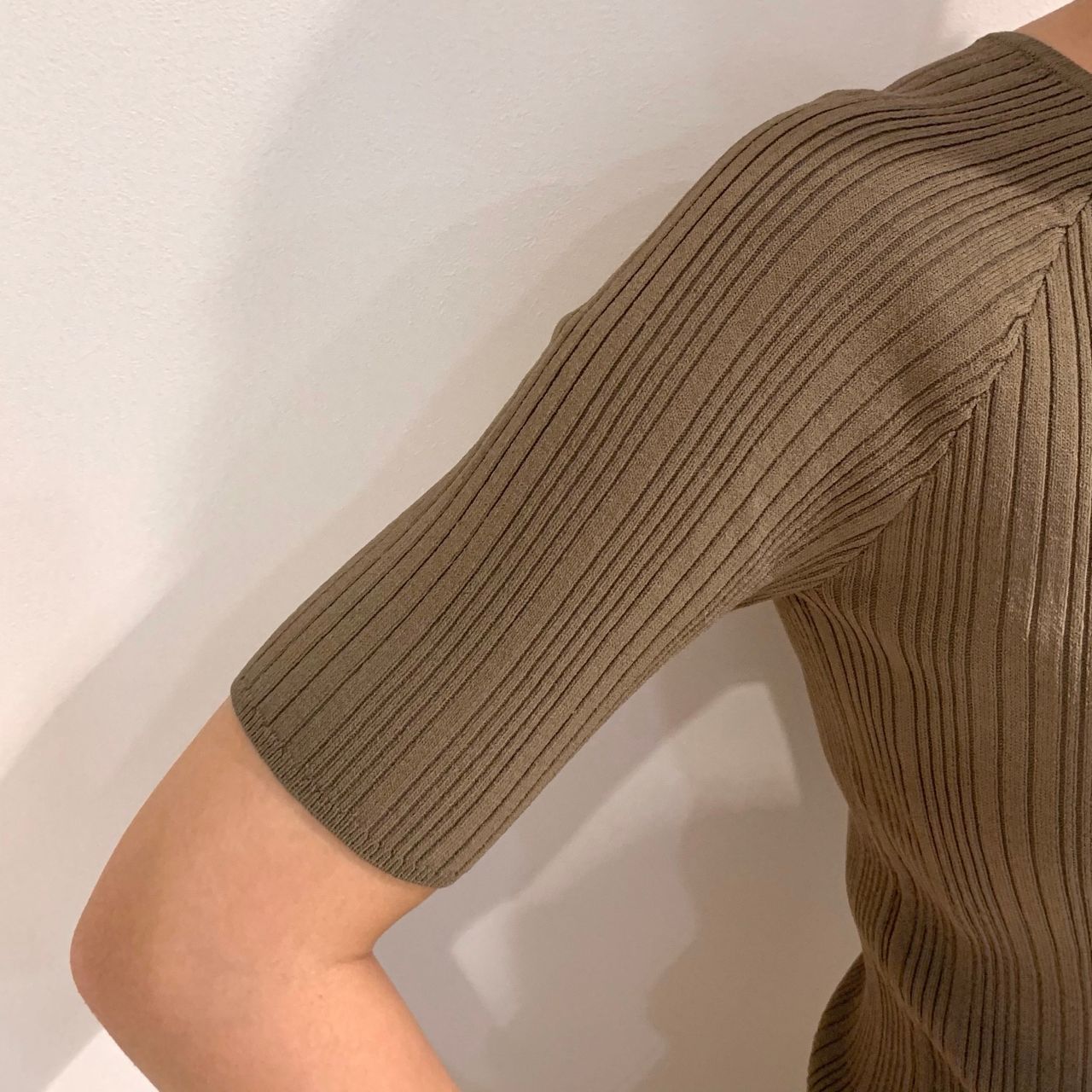 さて今回は、秋まで使えるスクエアネックリブニットをご紹介します!