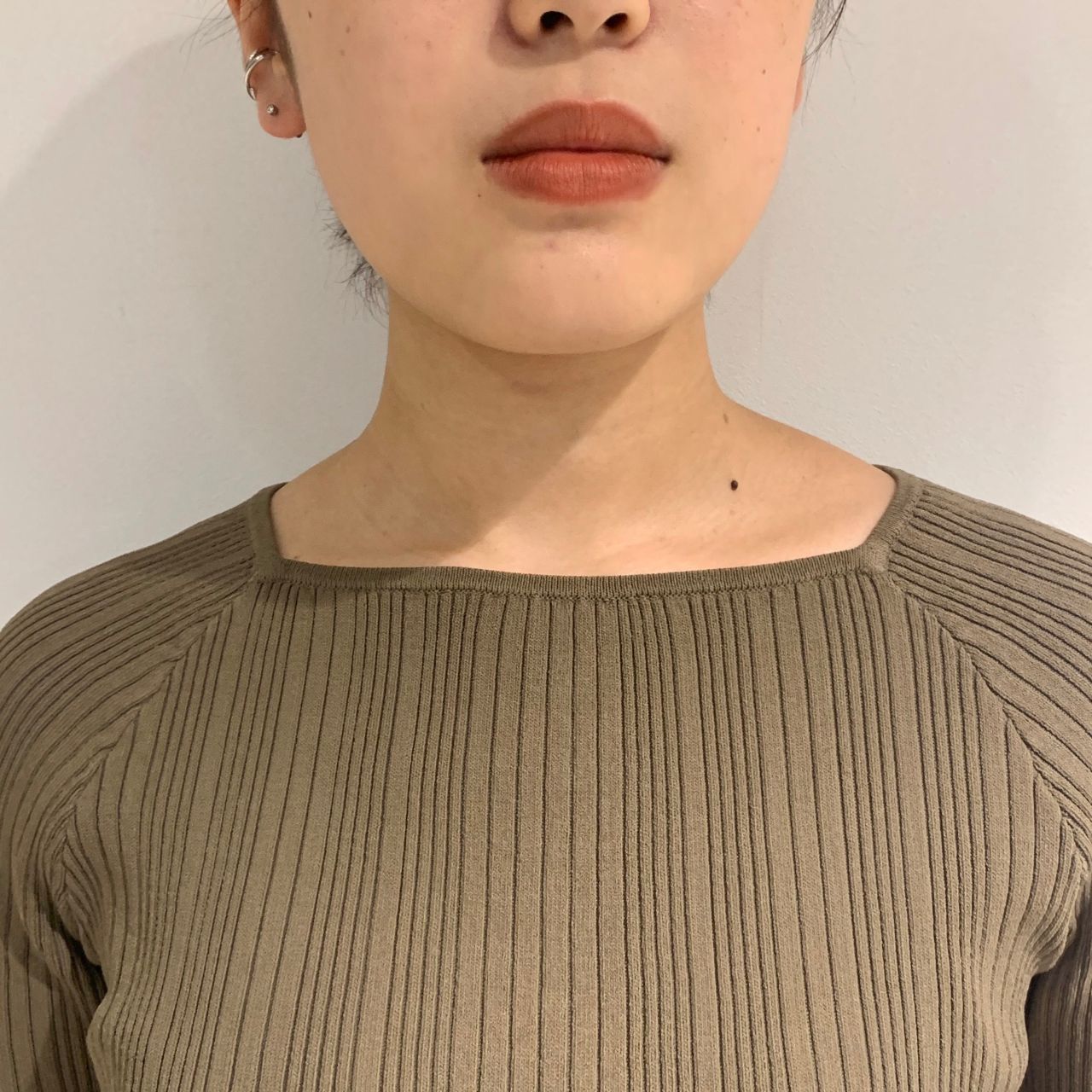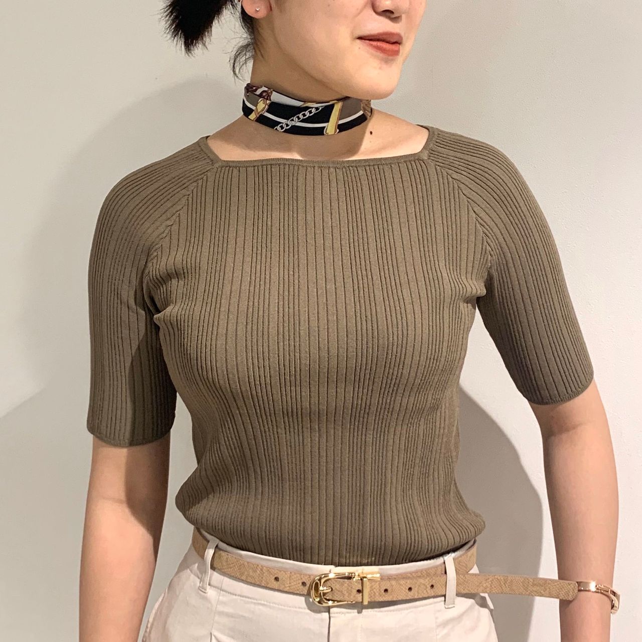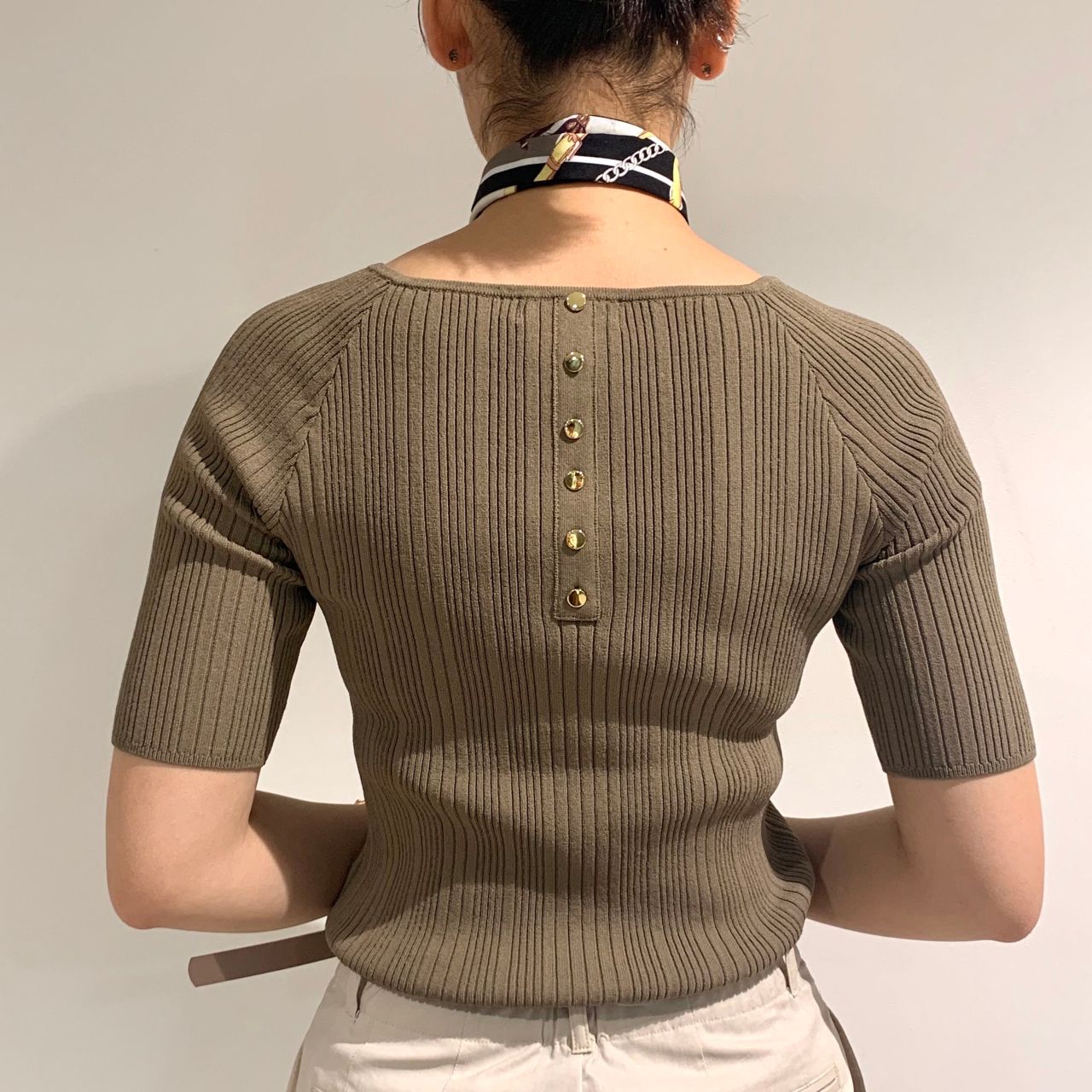 バックボタンがポイント!秋まで使えるスクエアネックリブニット♡東京駅八重洲店
