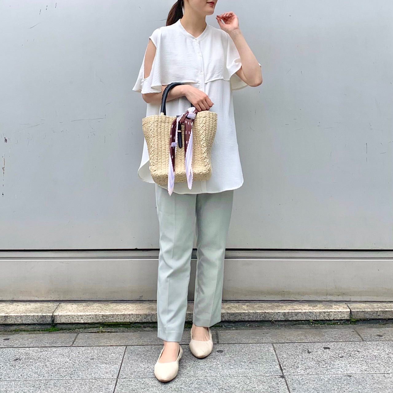 パンツでもスカートでも合わせやすくなっております!ご自身の好み次第で様々な着方ができるので、夏のお出かけにぴったりです◎