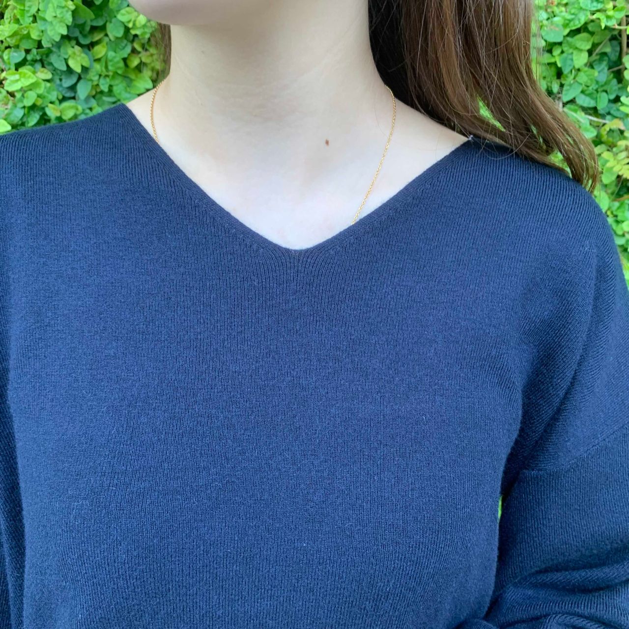 Vネックで首元をスッキリ見せることができます◎
