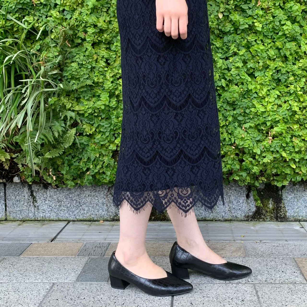 ◎Vネック×リバーシブルレースタイトスカート