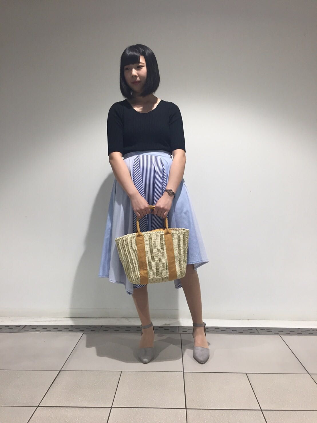 マリンテイストのあるフレアスカートを使ったコーディネートです♪