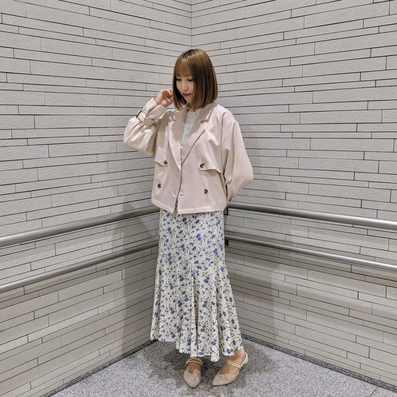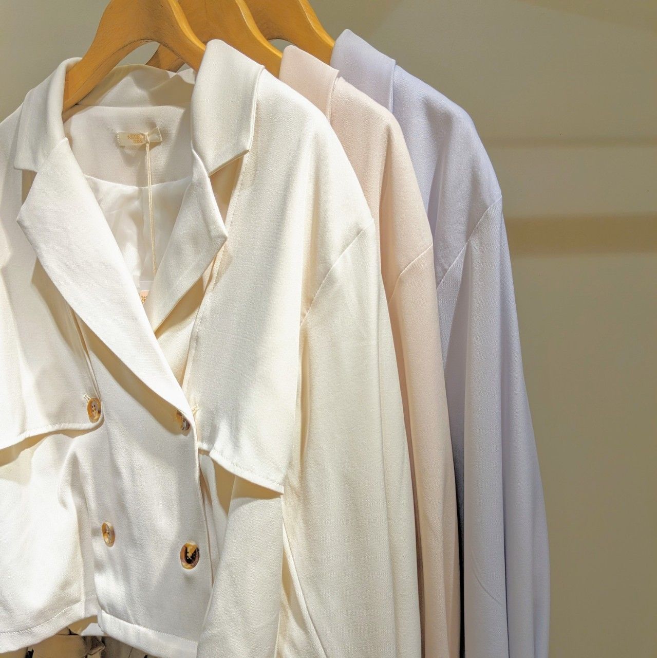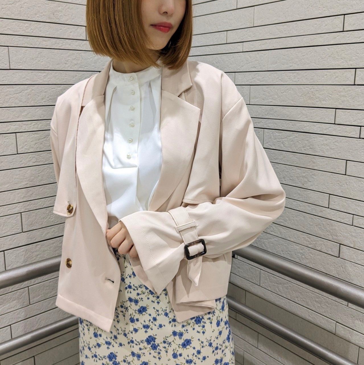 パステルカラーで女性らしく仕上げてくれるショートトレンチコート♪