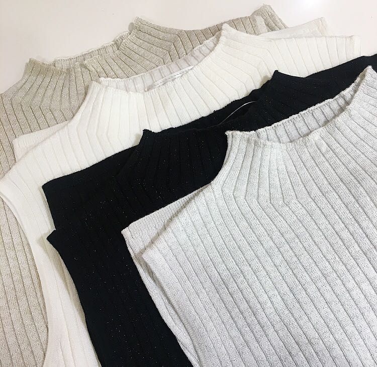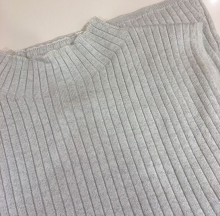 ハイネックのリブニットは