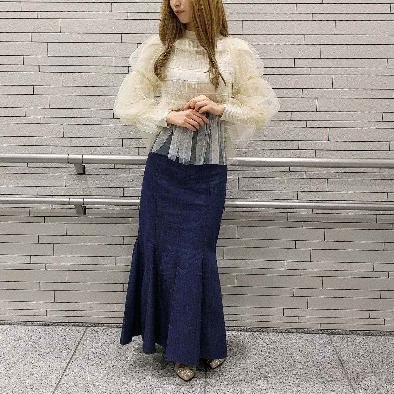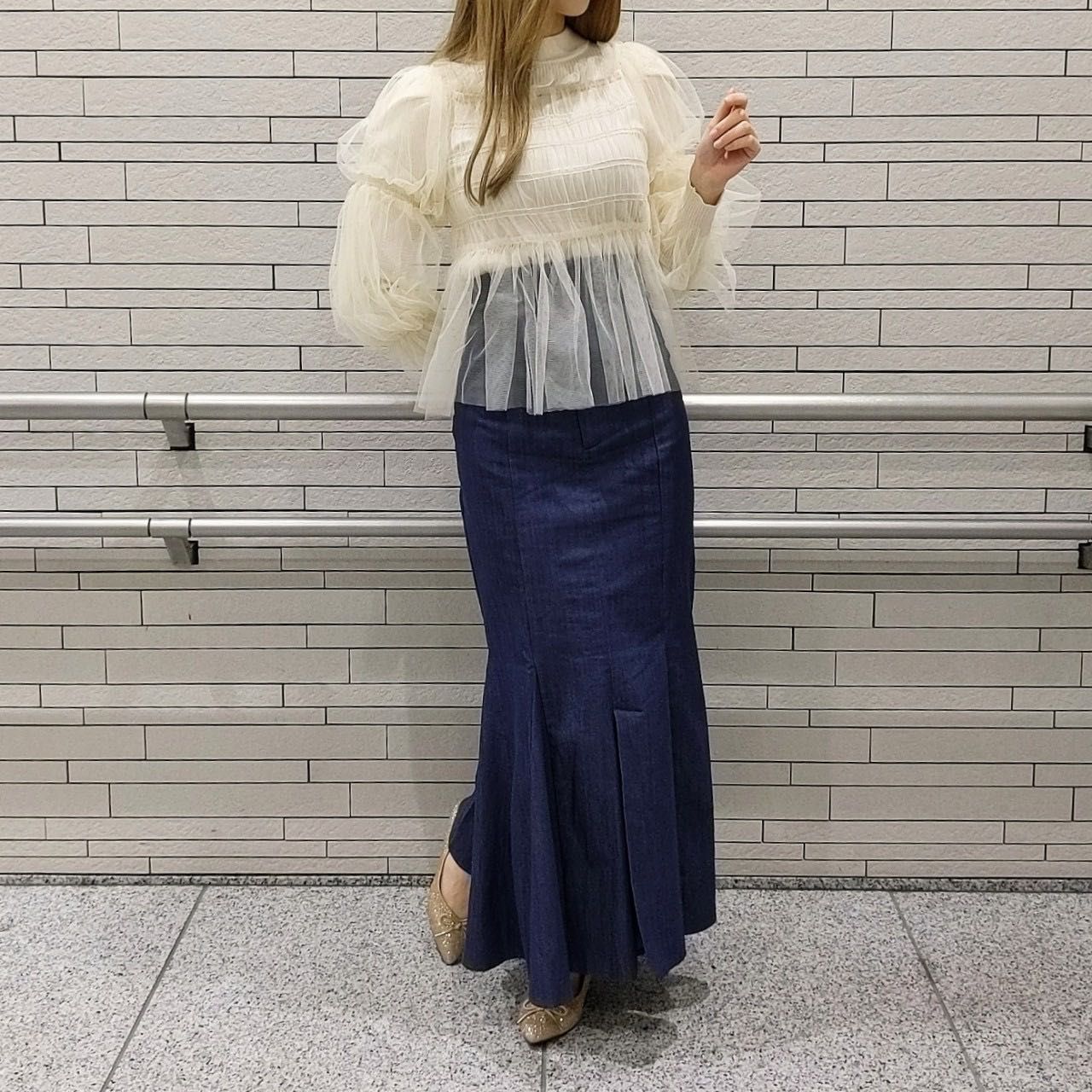 スカート合わせでフェミニンに着ていただくのはもちろん、パンツやデニムと合わせて、甘さを抑えたコーディネートもおすすめです♪