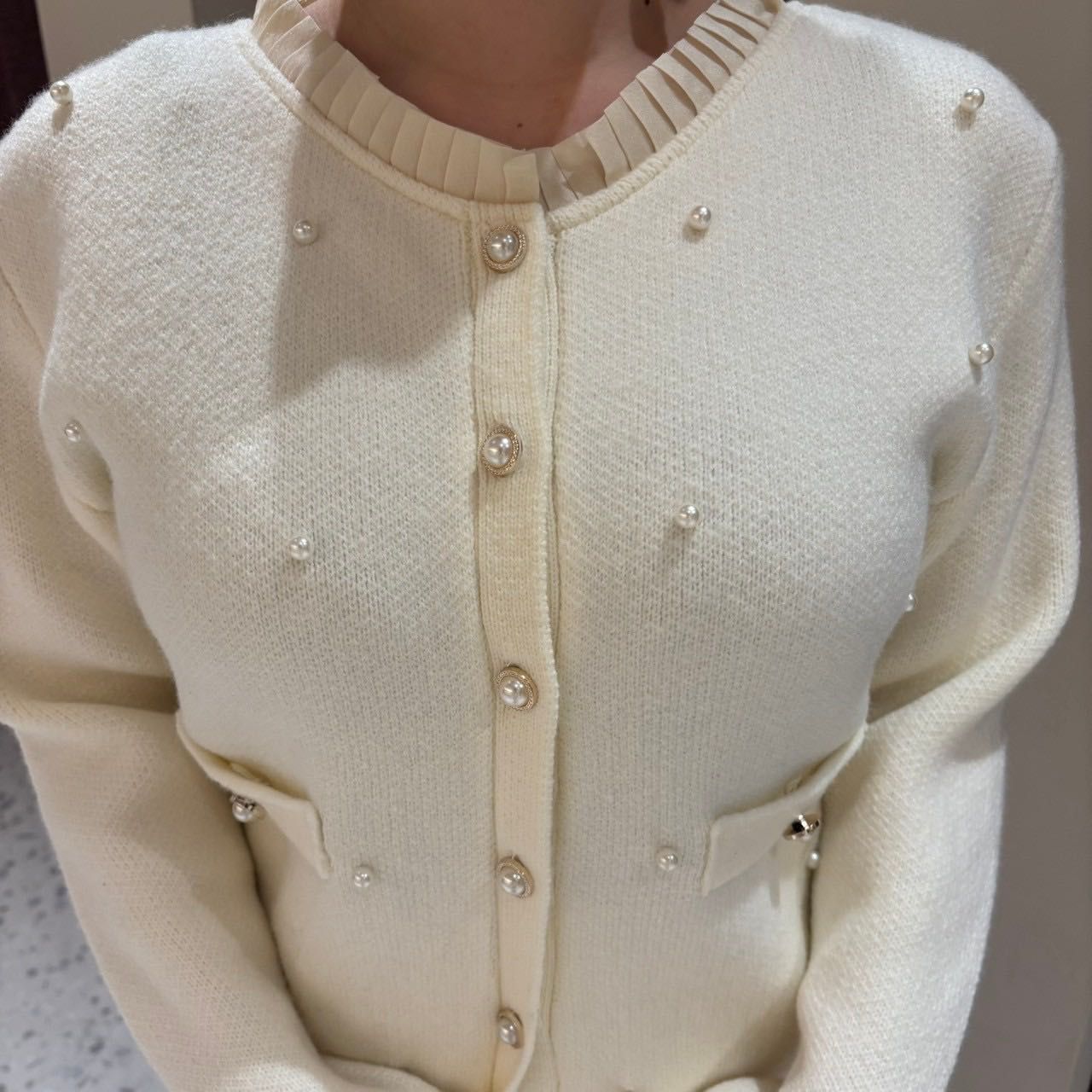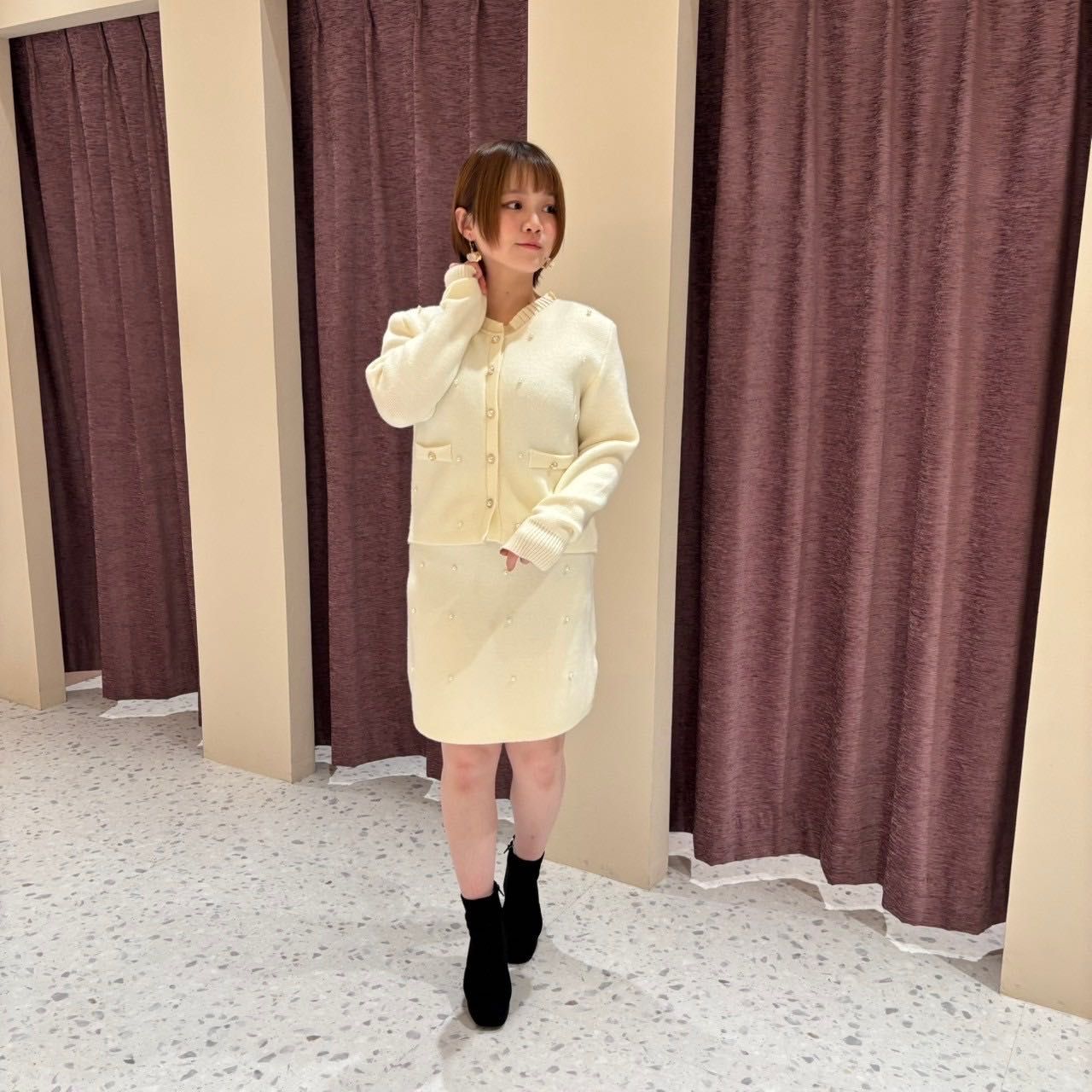 トップスやスカートに施されたパールデザインが華やかさを加え、着るだけで上品な仕上がりに♪
