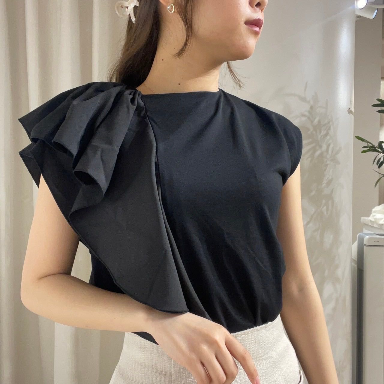 トップス1枚で高見えෆ アシンメトリーラッフル シルケットカットソー ෆルミネエスト新宿