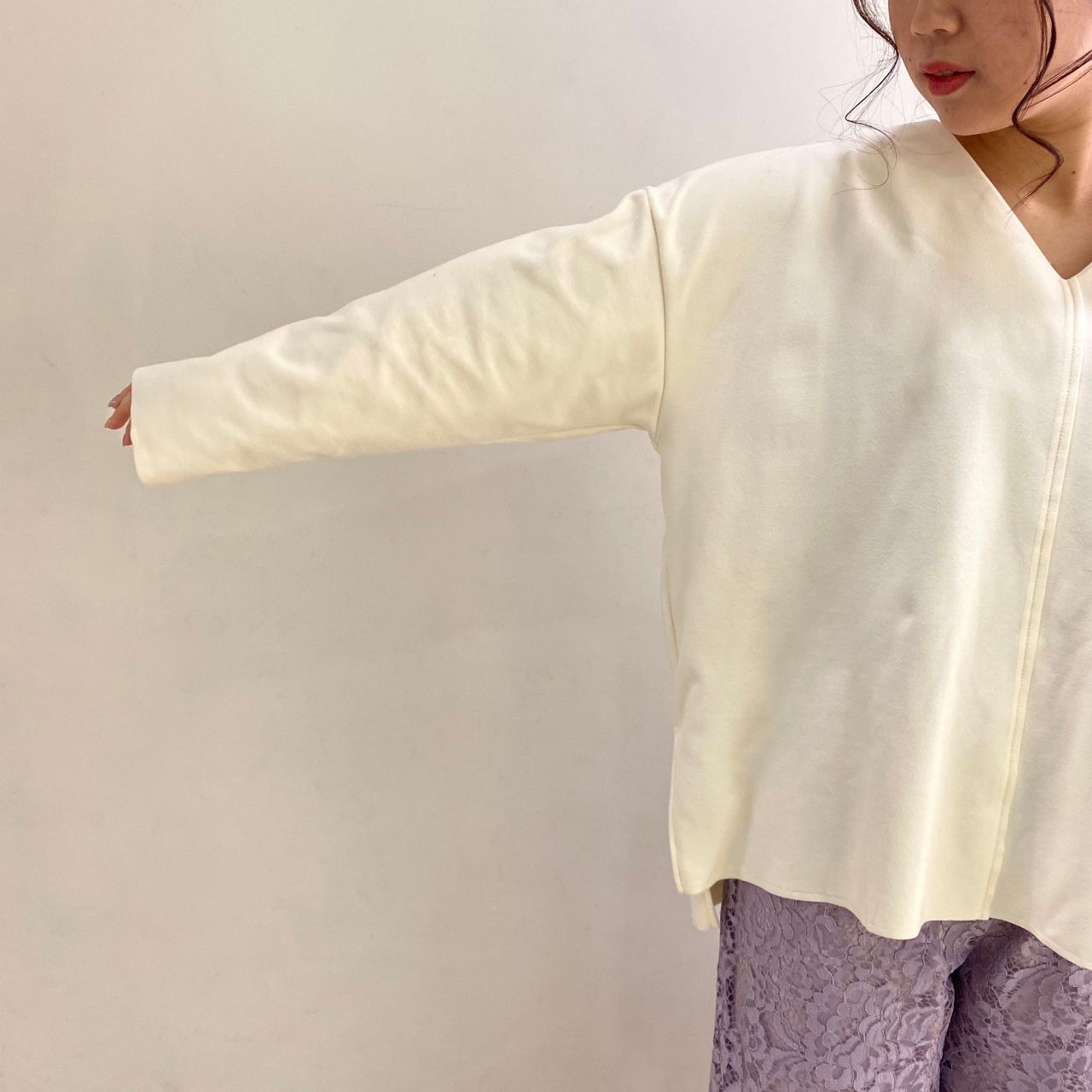 首元はVネックでとてもスッキリと!