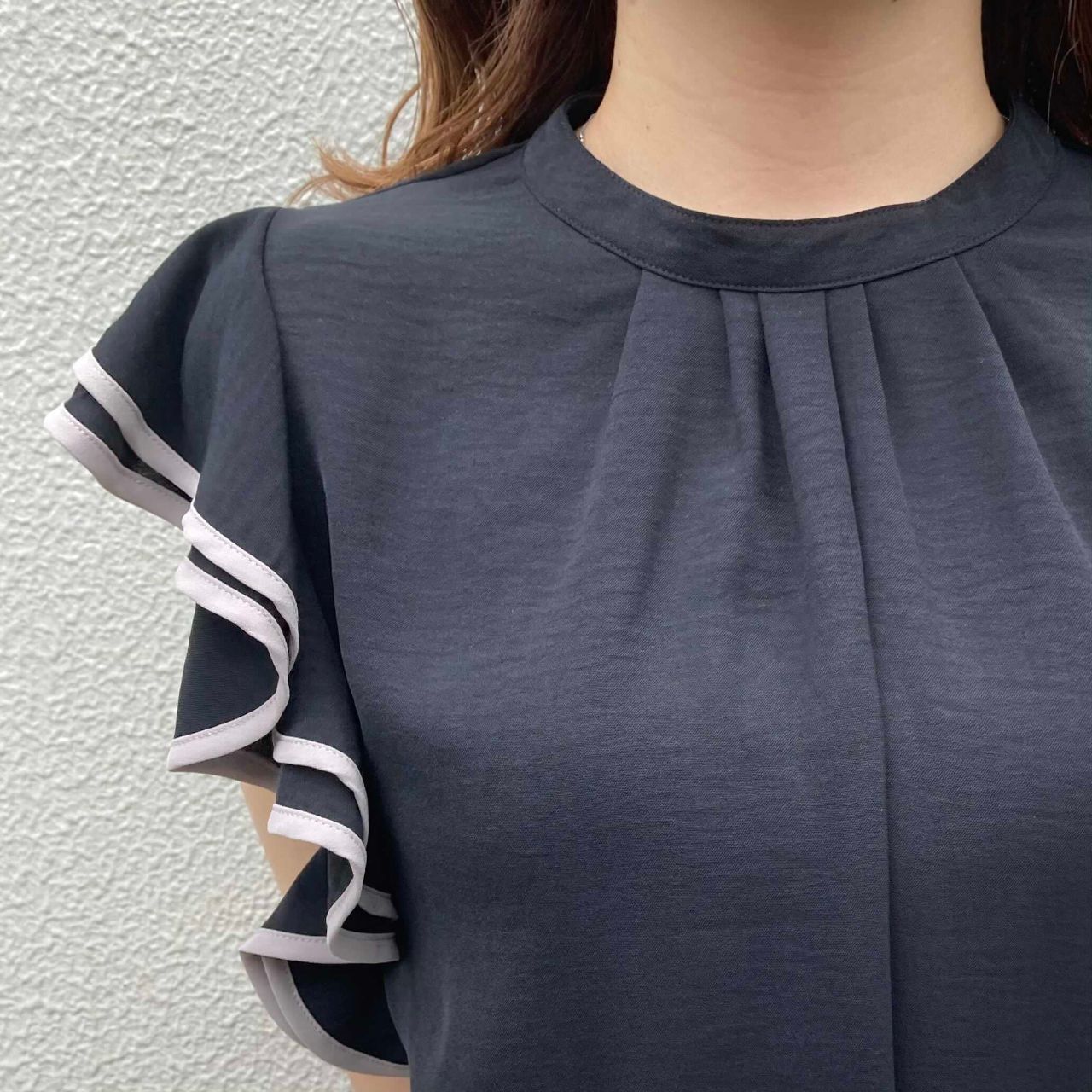 首元はギャザーが入っていて