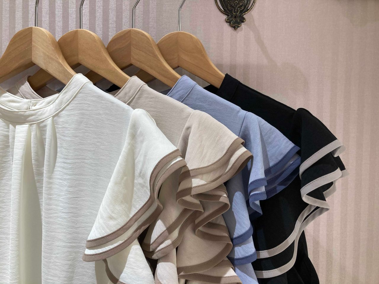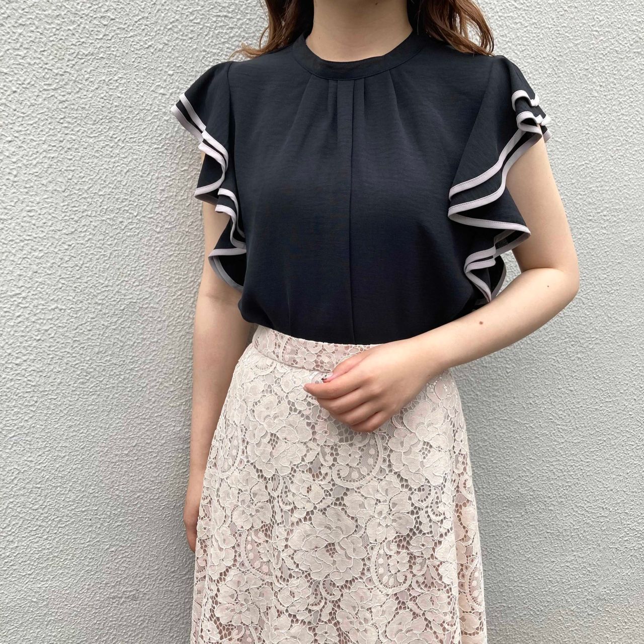 配色フリルスリーブブラウス