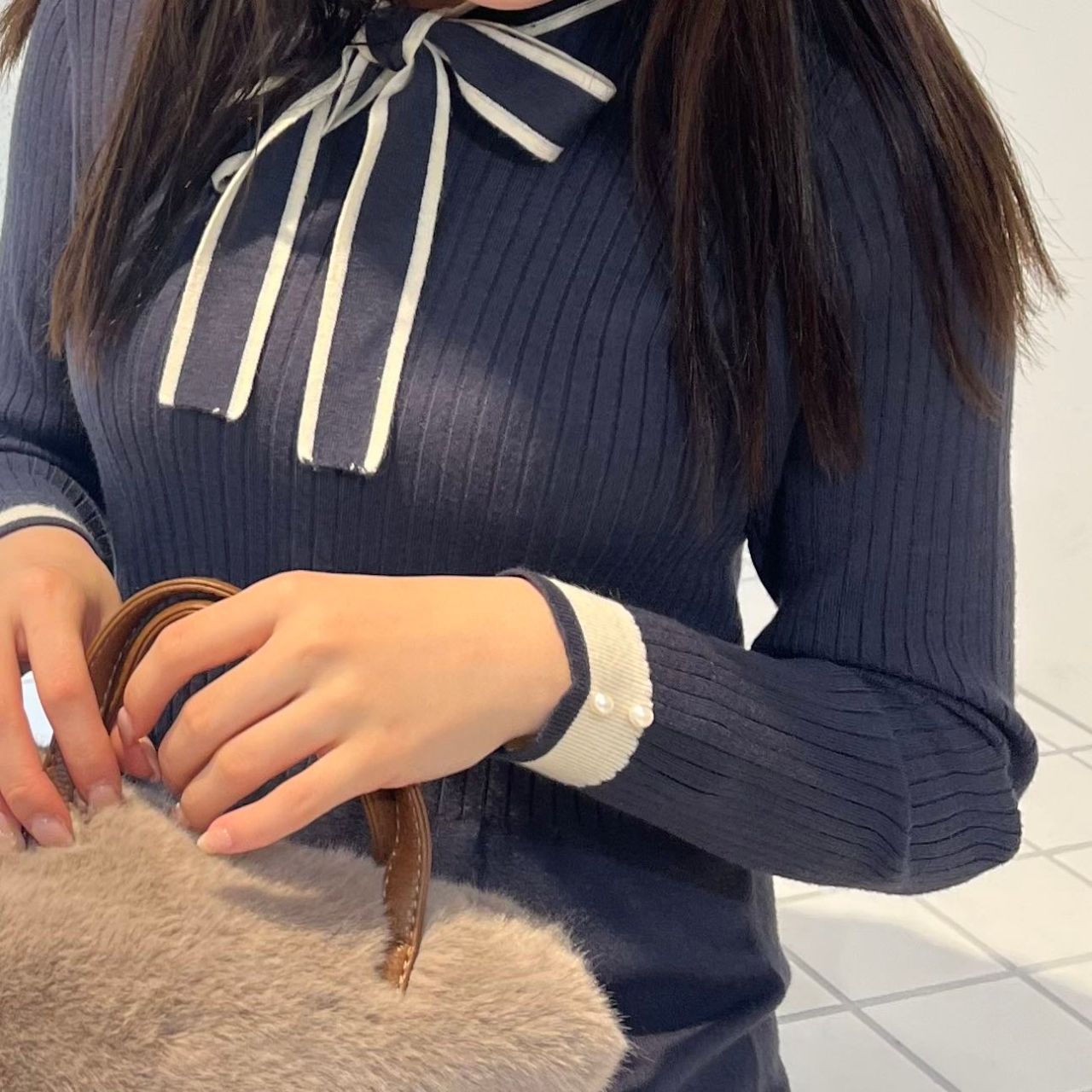 袖口部分にはパールを施していて女性らしく♡