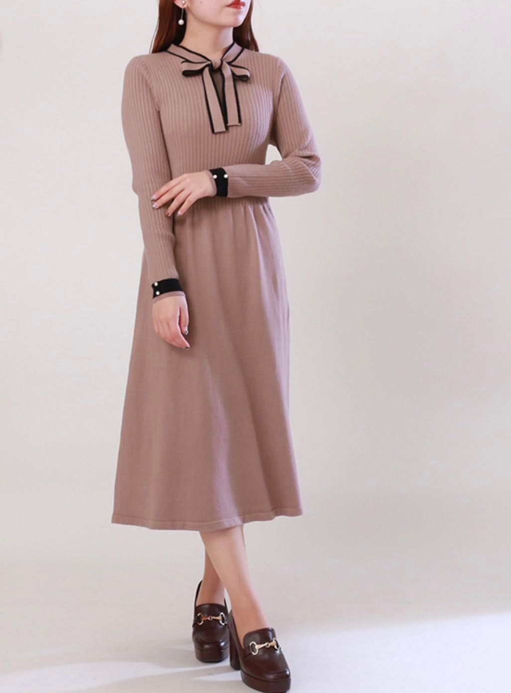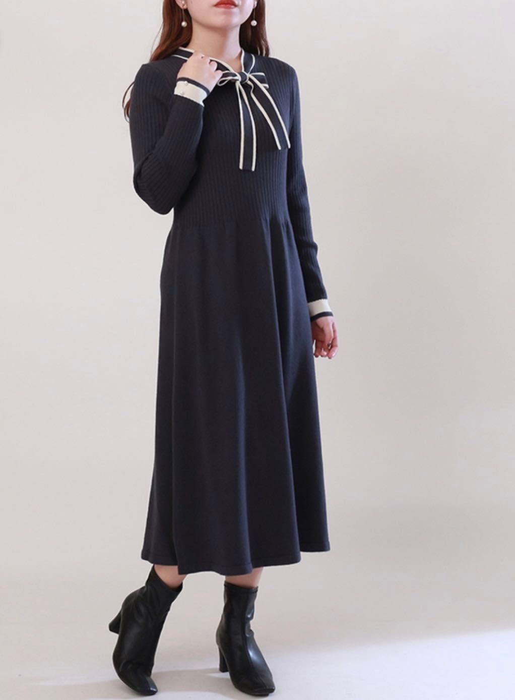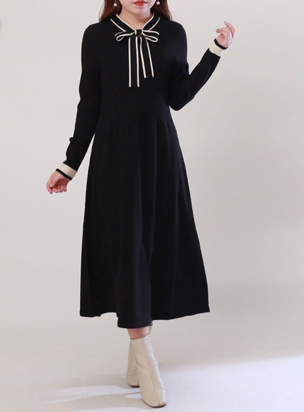 配色ボウタイニットワンピースです!!