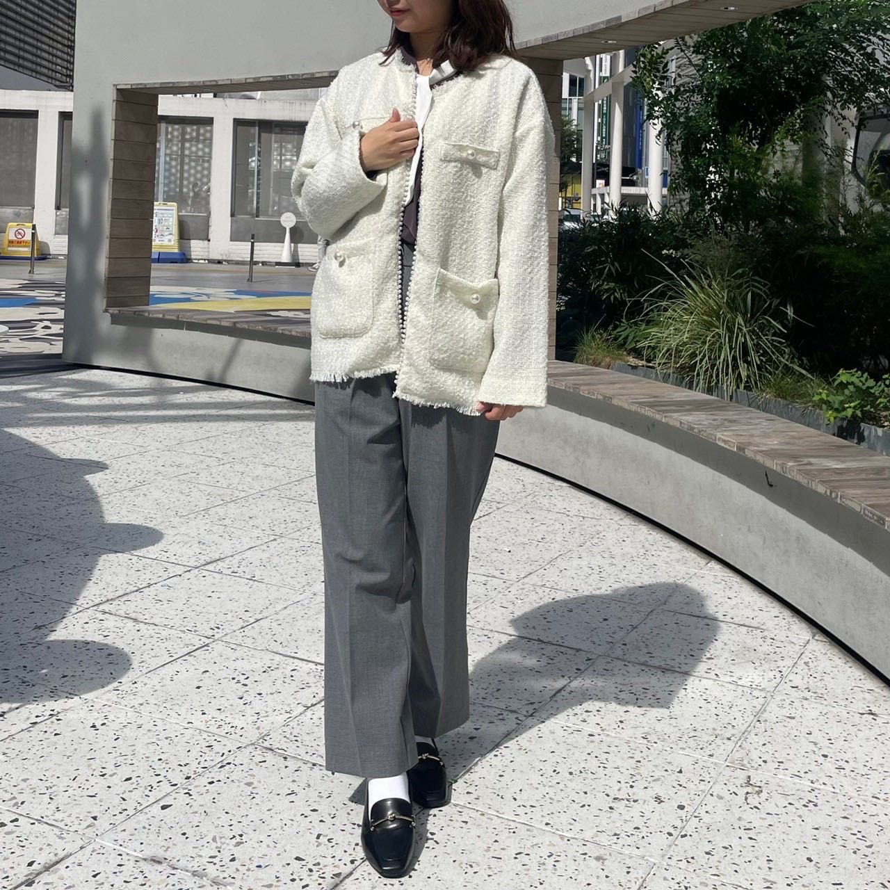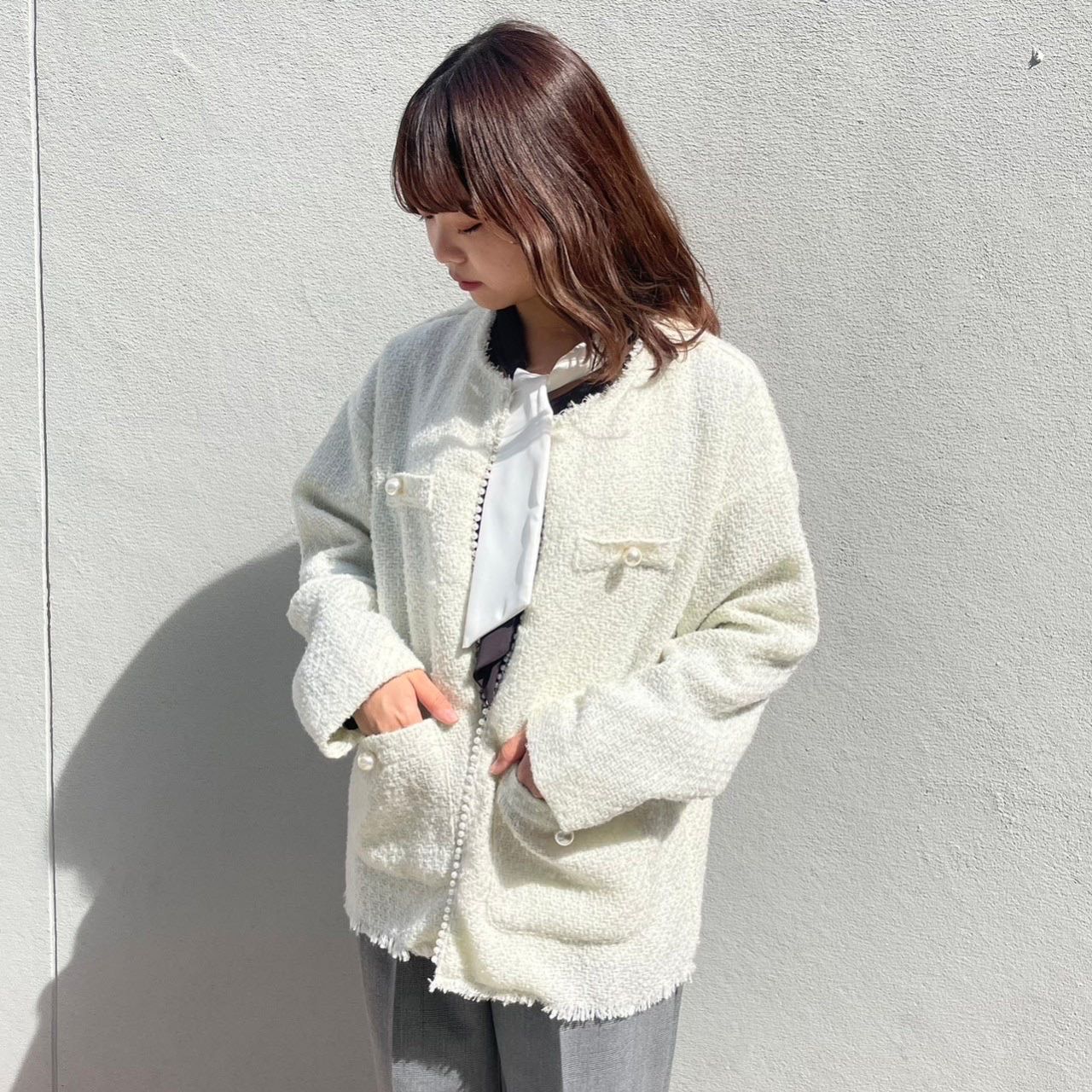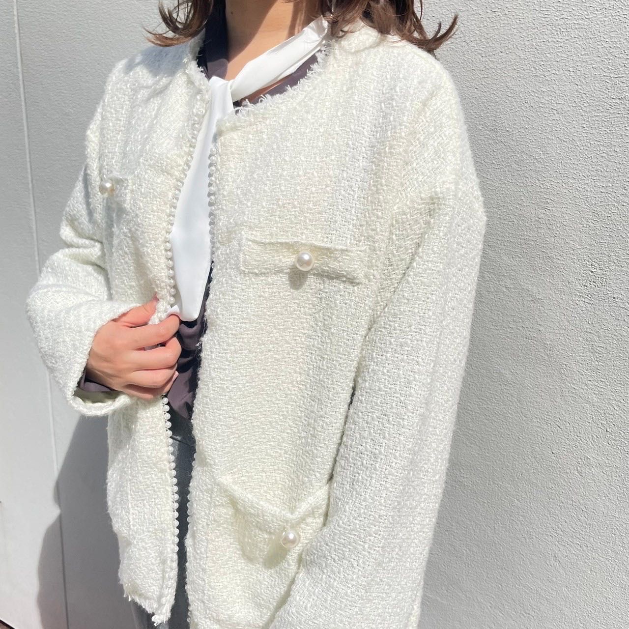 トレンド感◎パール付きツイードブルゾンෆルミネエスト新宿