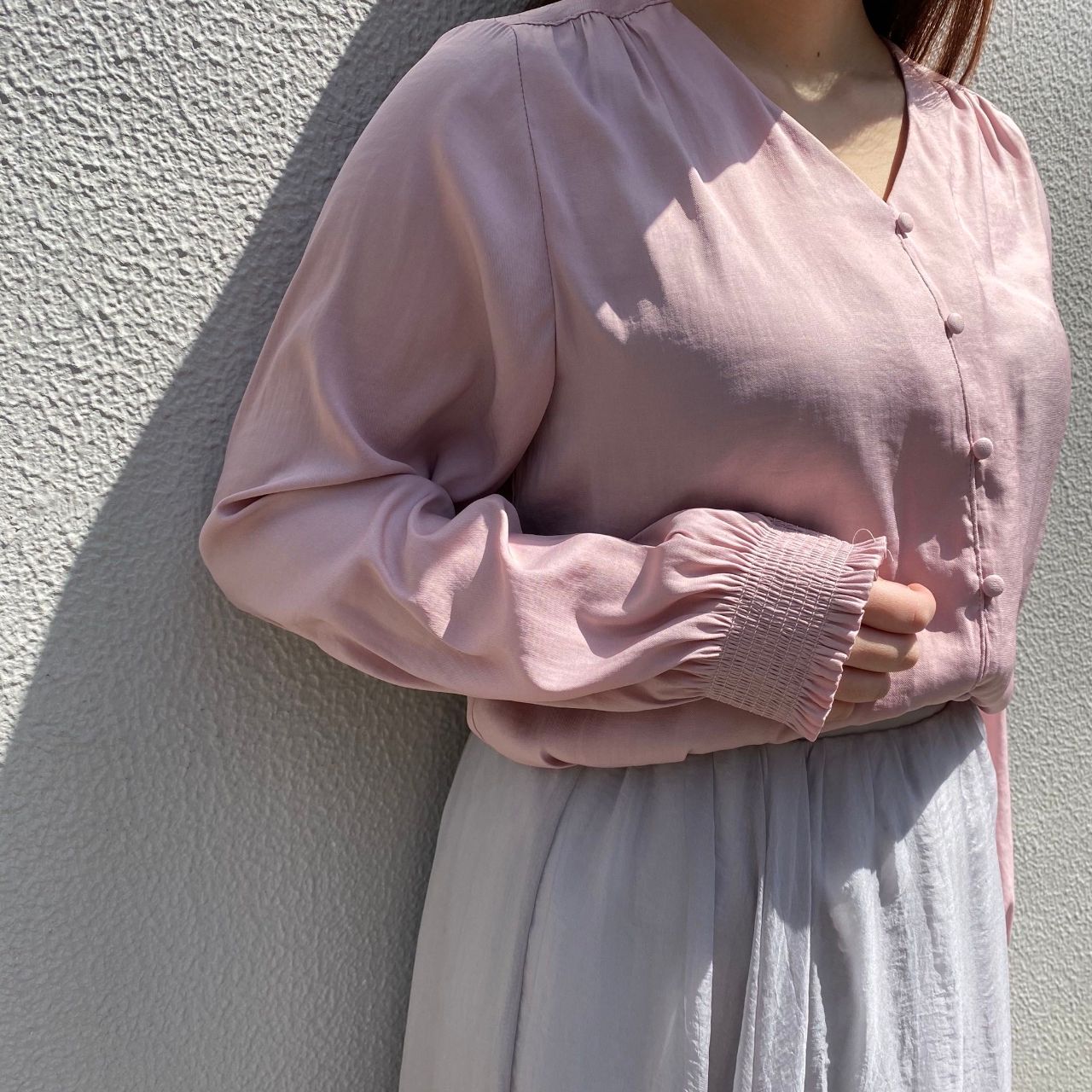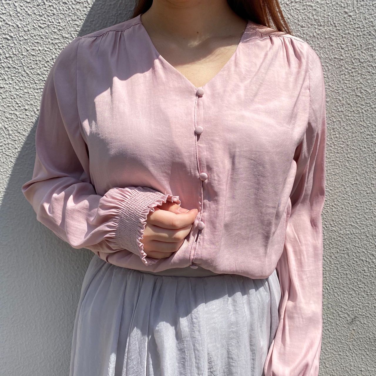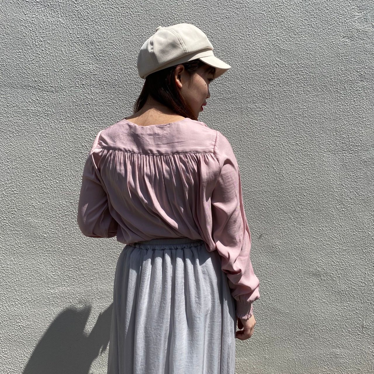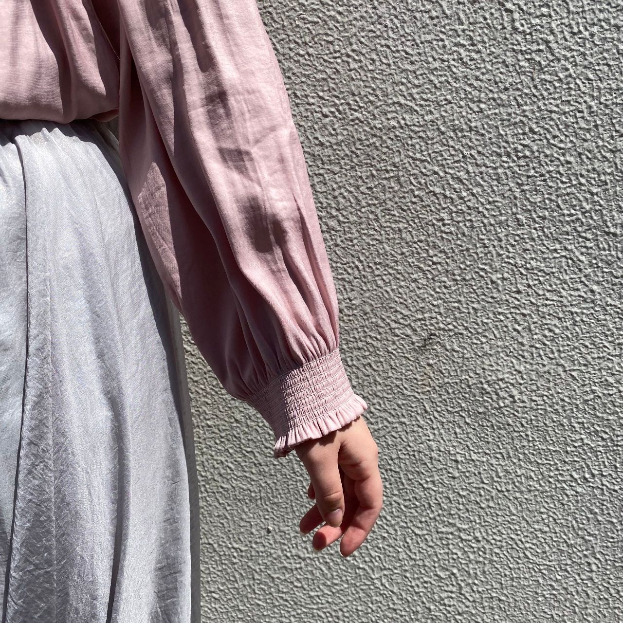 ふんわりとしたお袖に手首のシャーリングのデザインで全体的に腕がスッキリと見えますよ!!
