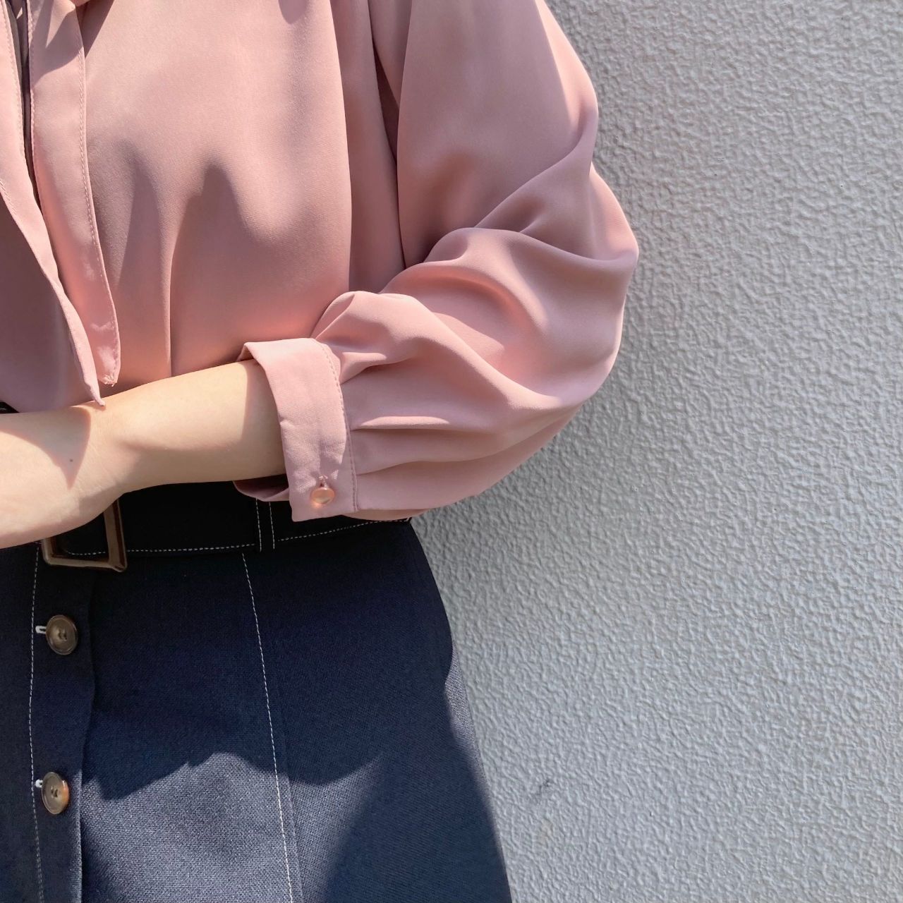 2wayパールピンボウタイブラウス