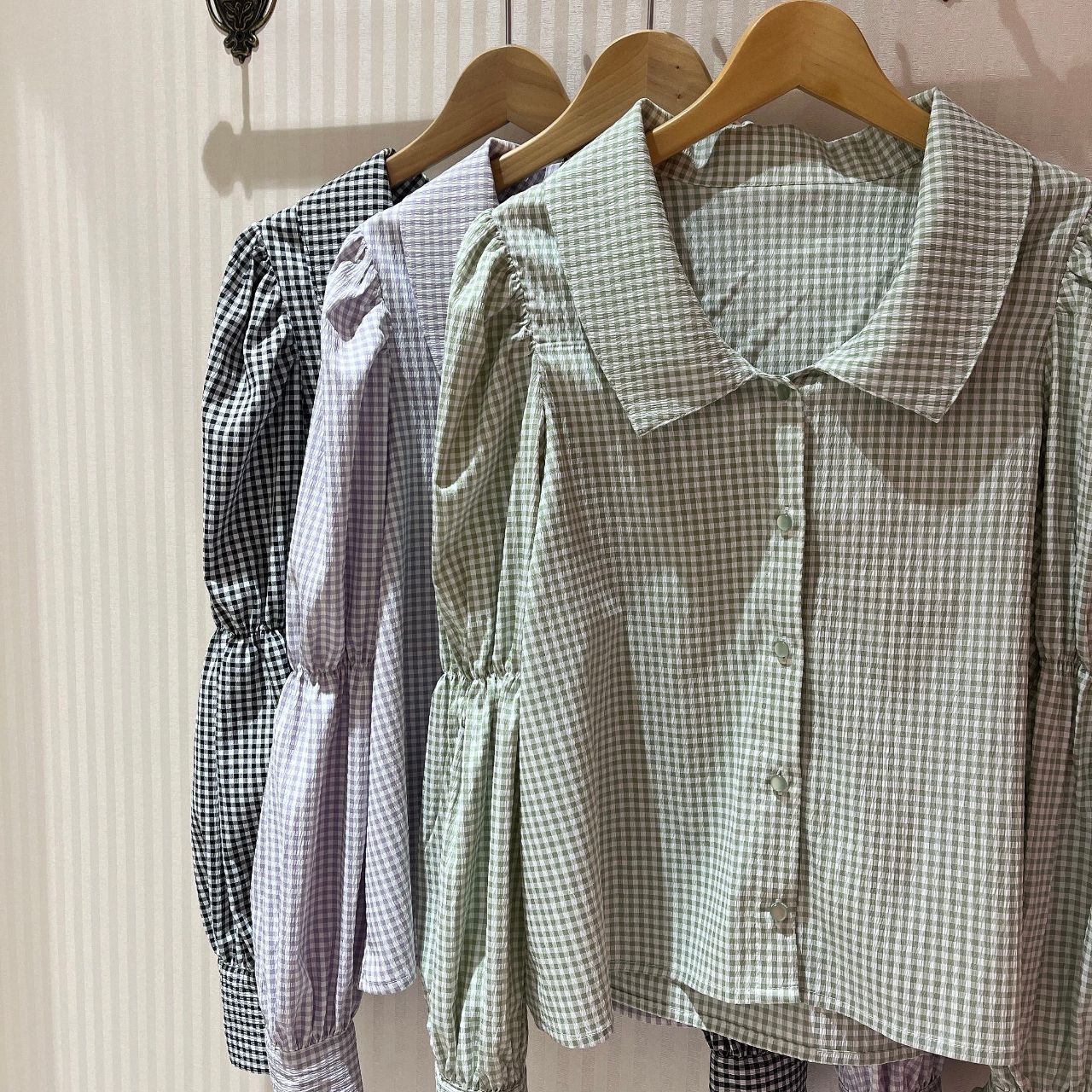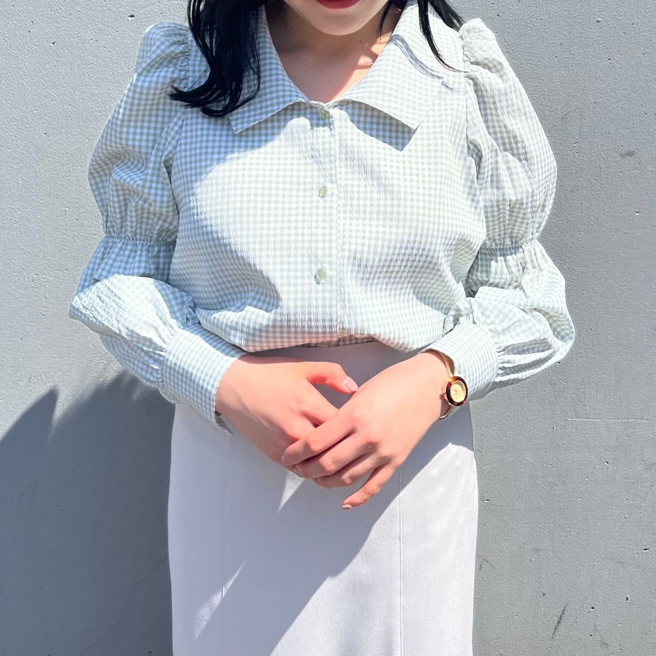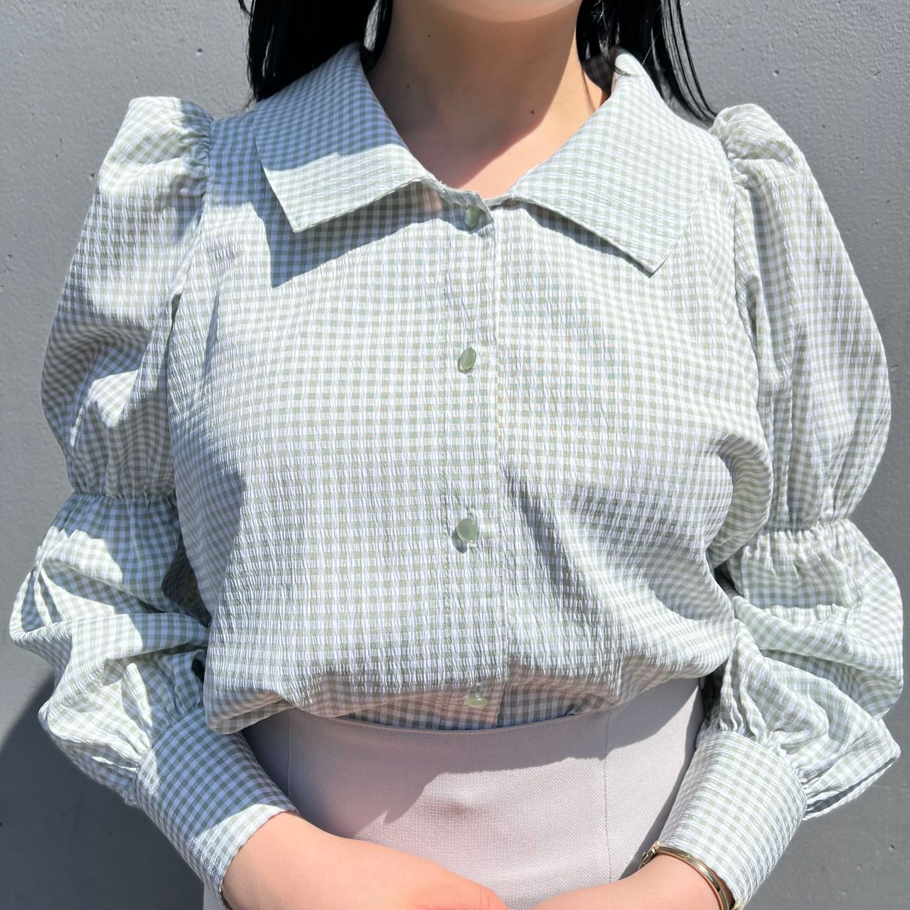 ボリューム感たっぷりのお袖がポイント!!パフスリーブチェックブラウス ♥ルミネエスト新宿店